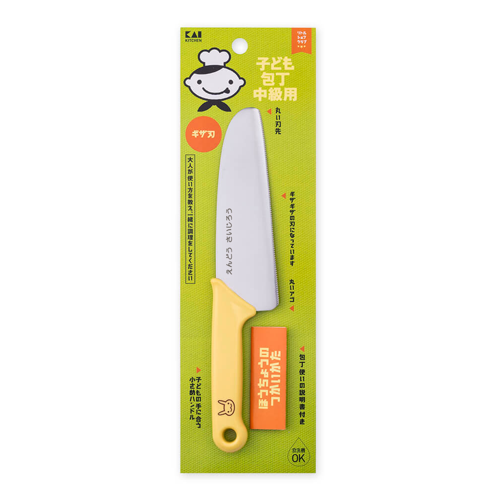 ・アゴと刃先を丸くした、けがをしにくい形状です。・小さめのハンドルでしっかりにぎれるため、おこさまの料理デビューに最適です。