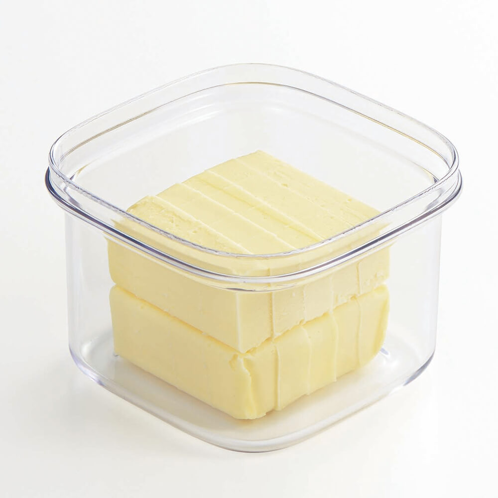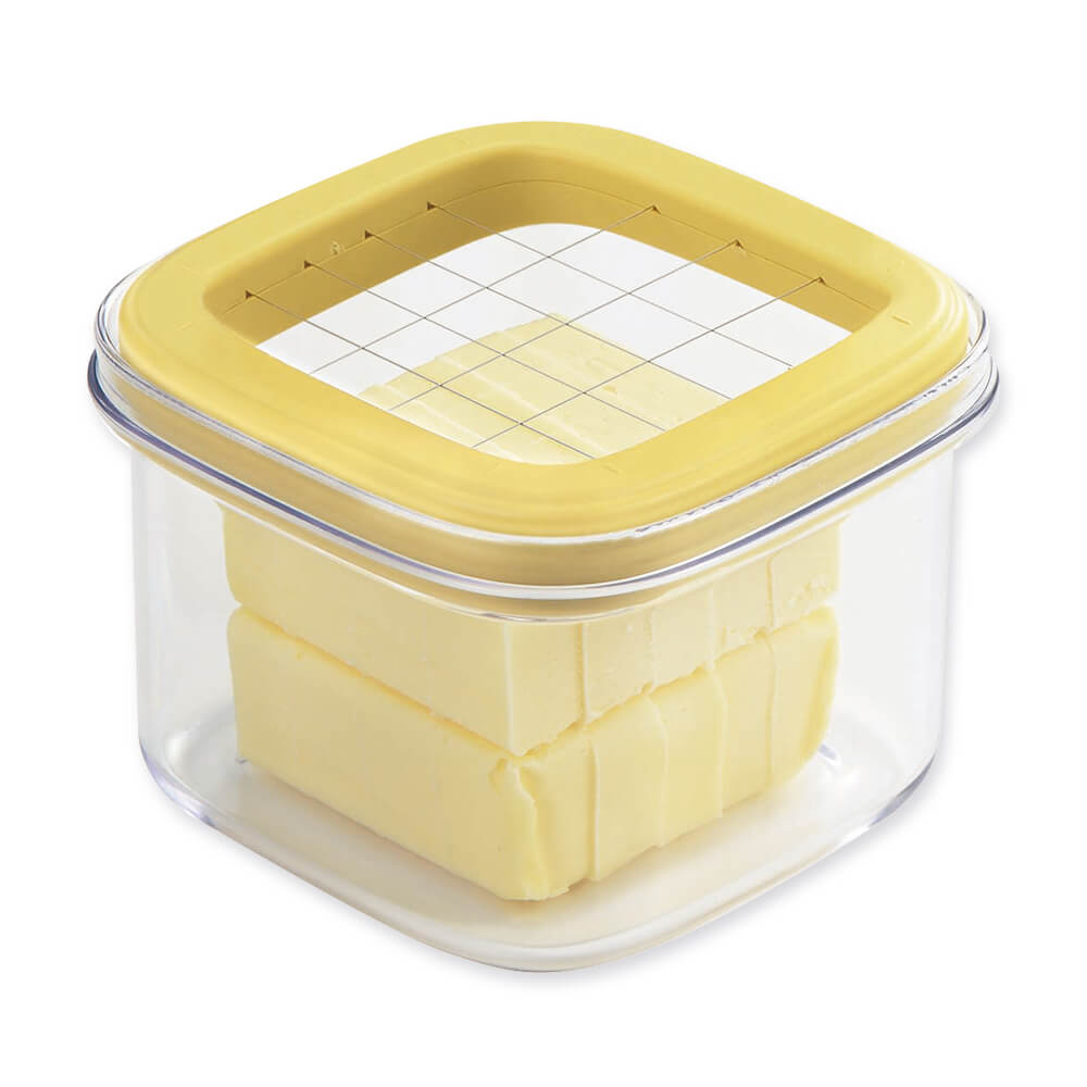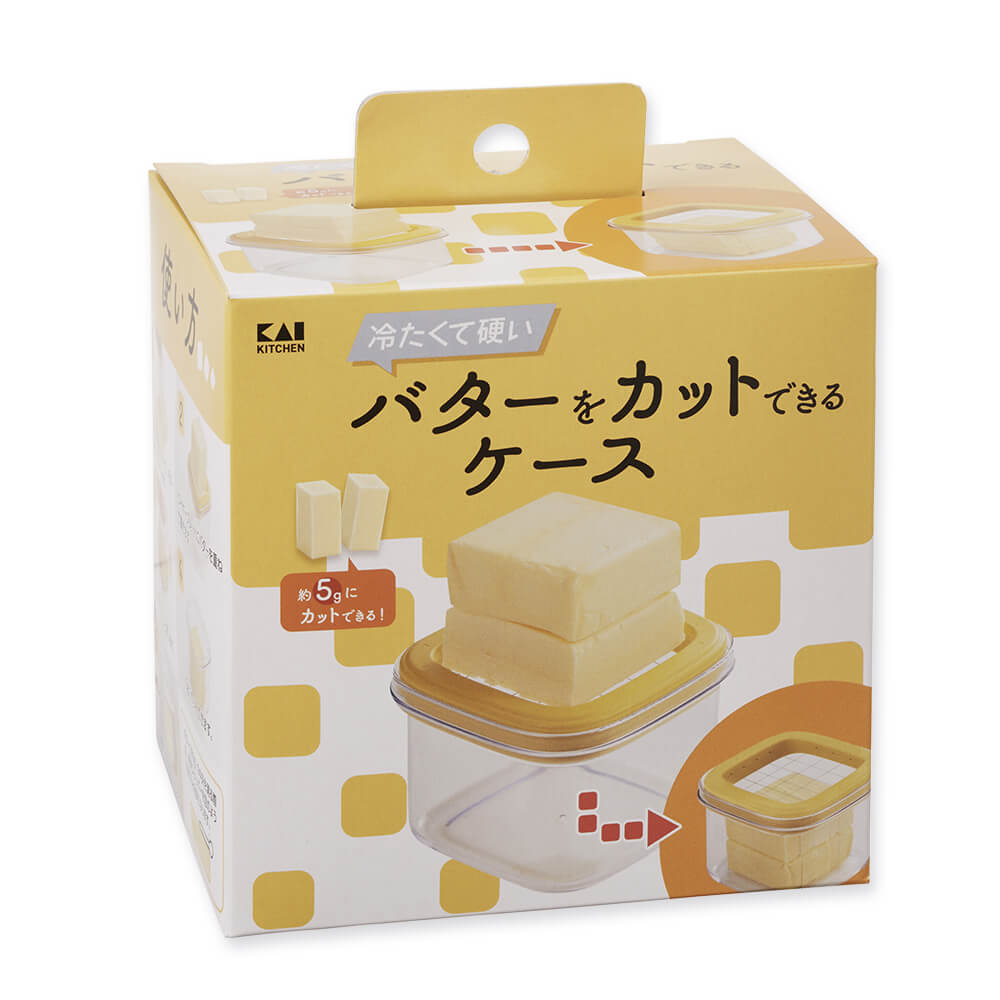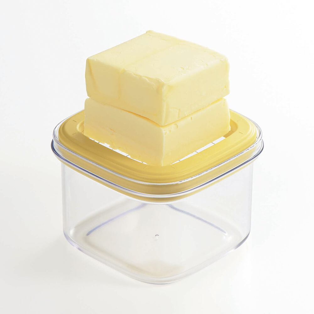 冷蔵庫から出したばかりの冷たくて硬いバターをカットでき、そのまま保存できるケースです。