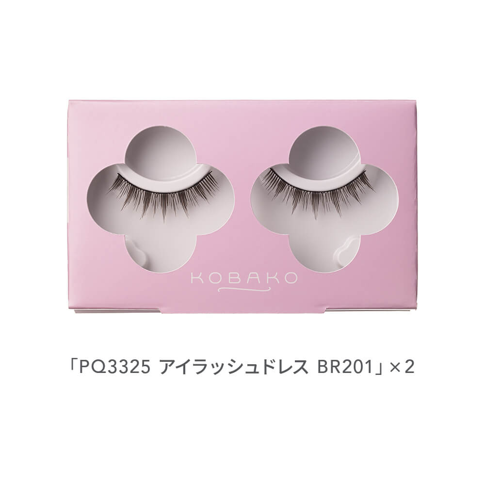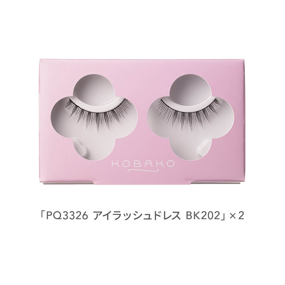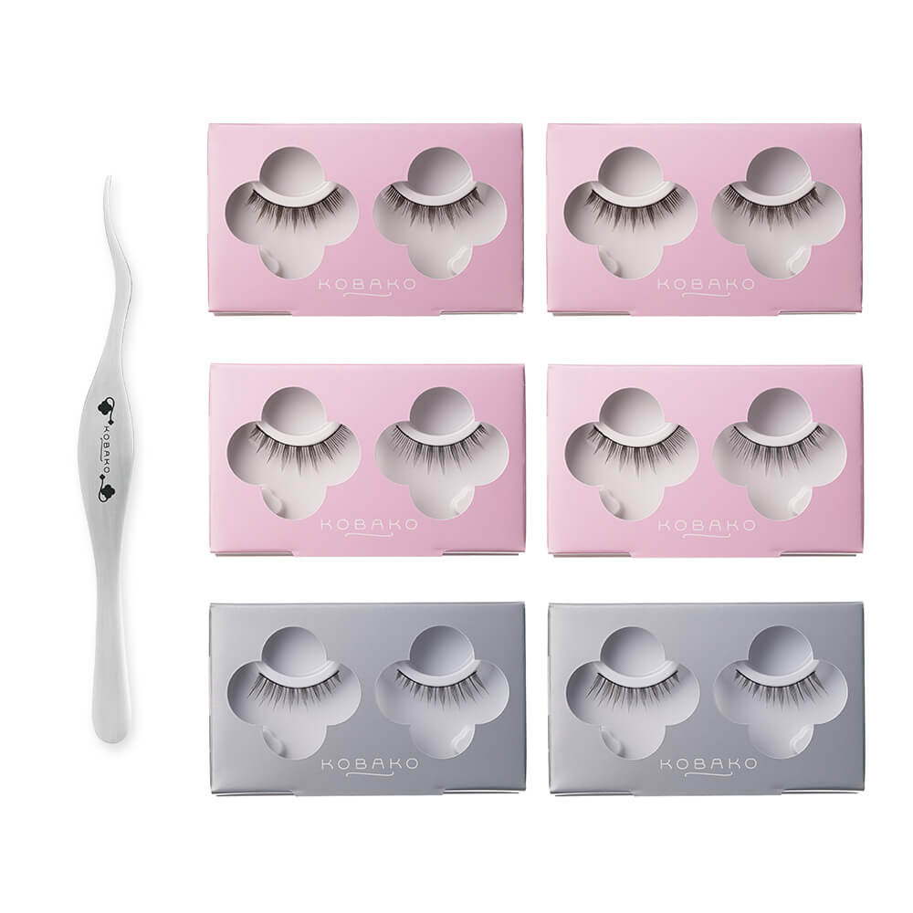 ナチュラルなのに、キレイで華やか。そんな大人の女性が抱く理想の目元を叶えるKOBAKOの「アイラッシュドレス」(つけまつげ)シリーズのハッピーバッグ。3種のつけまつげを2個セットずつに、つけまつげ用のピンセット「アイラッシュアプリケーター」がついたセットです。