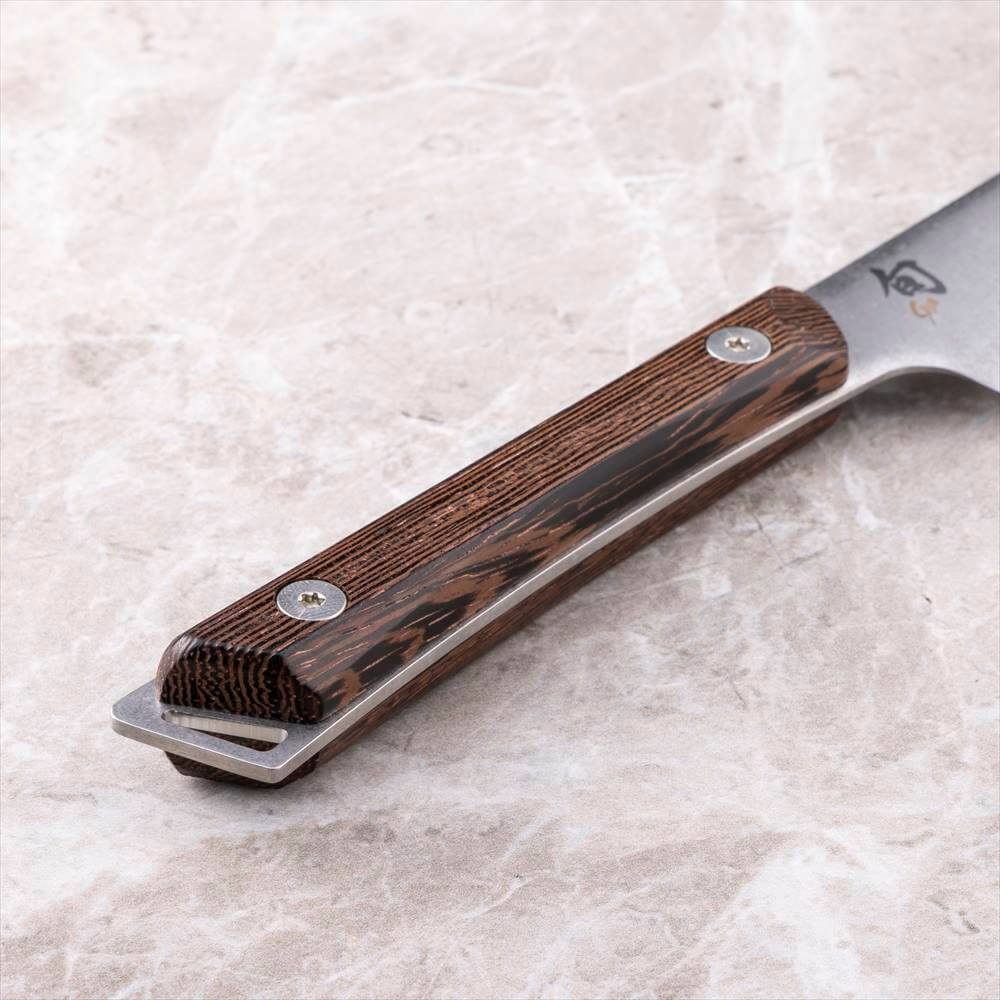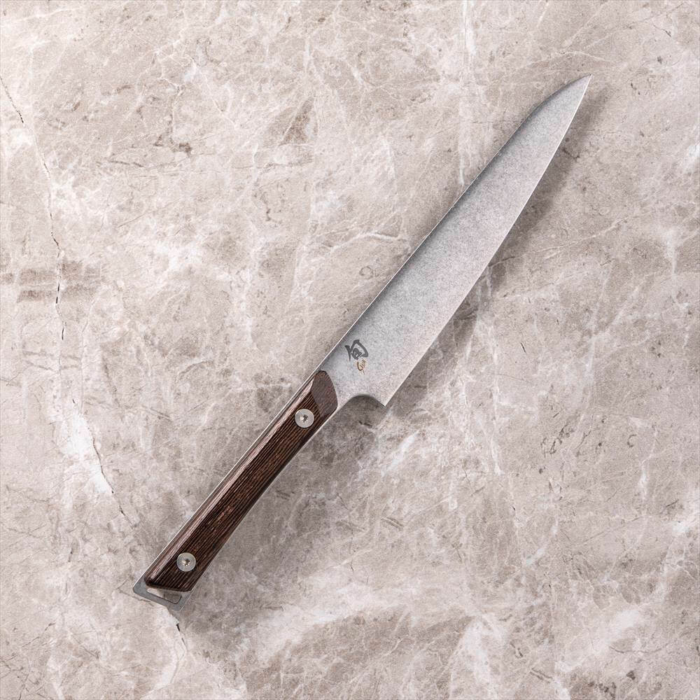 - シェフズナイフとパーリングナイフの中間のサイズ「ユーティリティ」スリムでカミソリのような鋭い刃は、肉だけでなく、野菜の下処理やチーズのスライスなどの作業にも最適です。