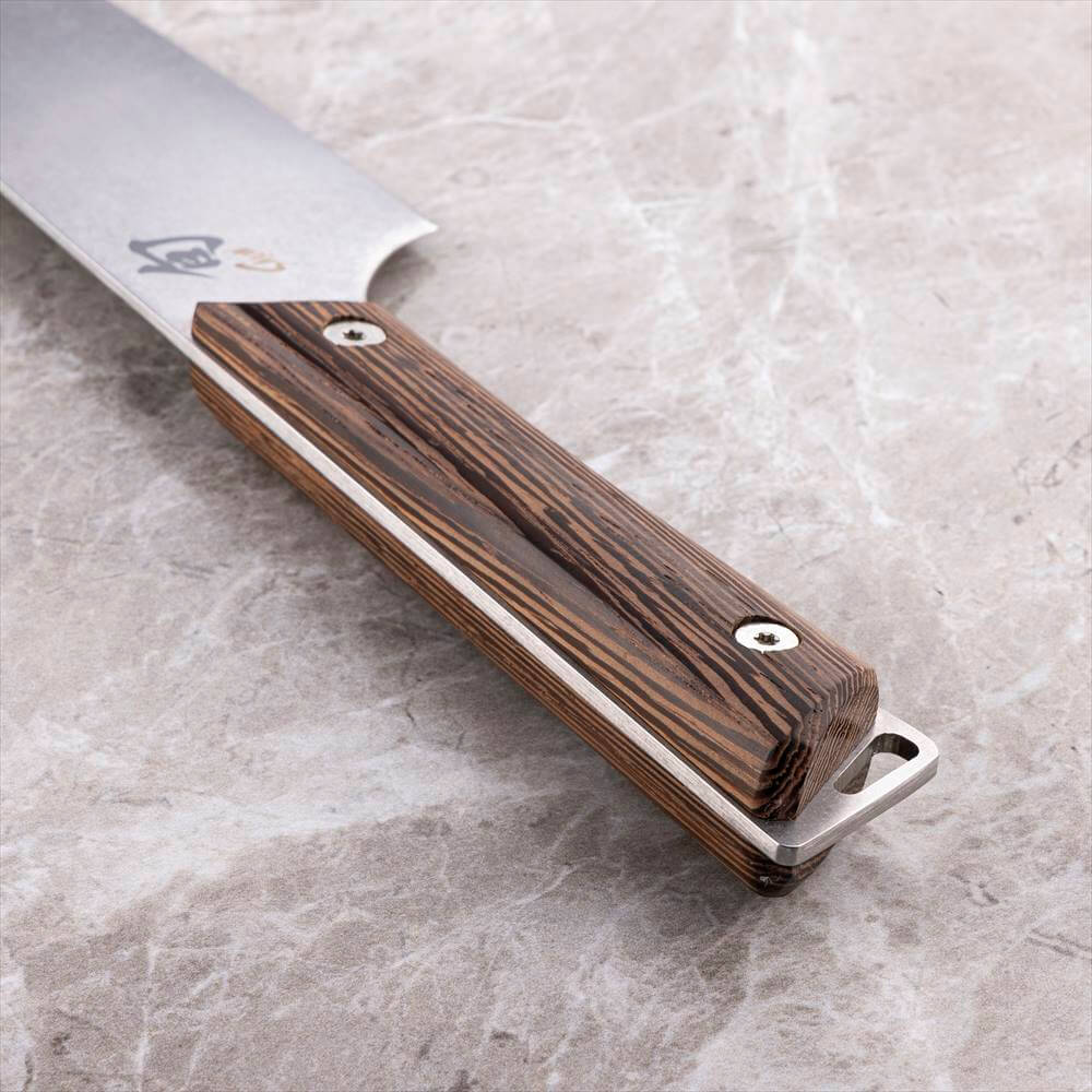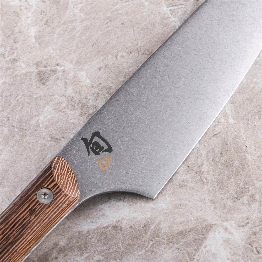 - さまざまなカットに最適な万能包丁「シェフズナイフ」・200mmの刃渡りは、果物、野菜、肉類、その他の食材を調理するのに最適です。・長い刃は、まな板全体をカバーできるので、切った食材をまな板からフライパンや鍋に移すときにもスムーズです。・刃の腹がカーブしているので、ハーブやスパイスを刻む時に便利です。