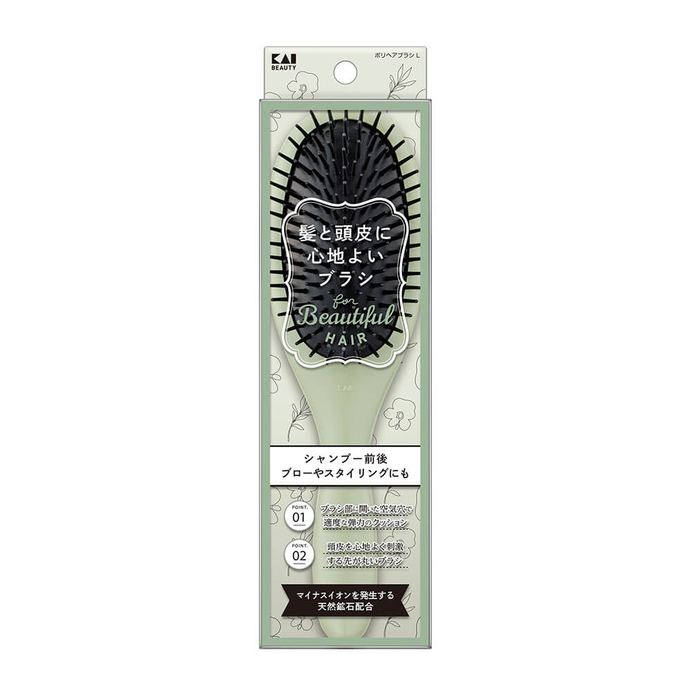 ポリヘアブラシL(髪と頭皮に心地よいブラシ)ニュアンスグリーン_L
