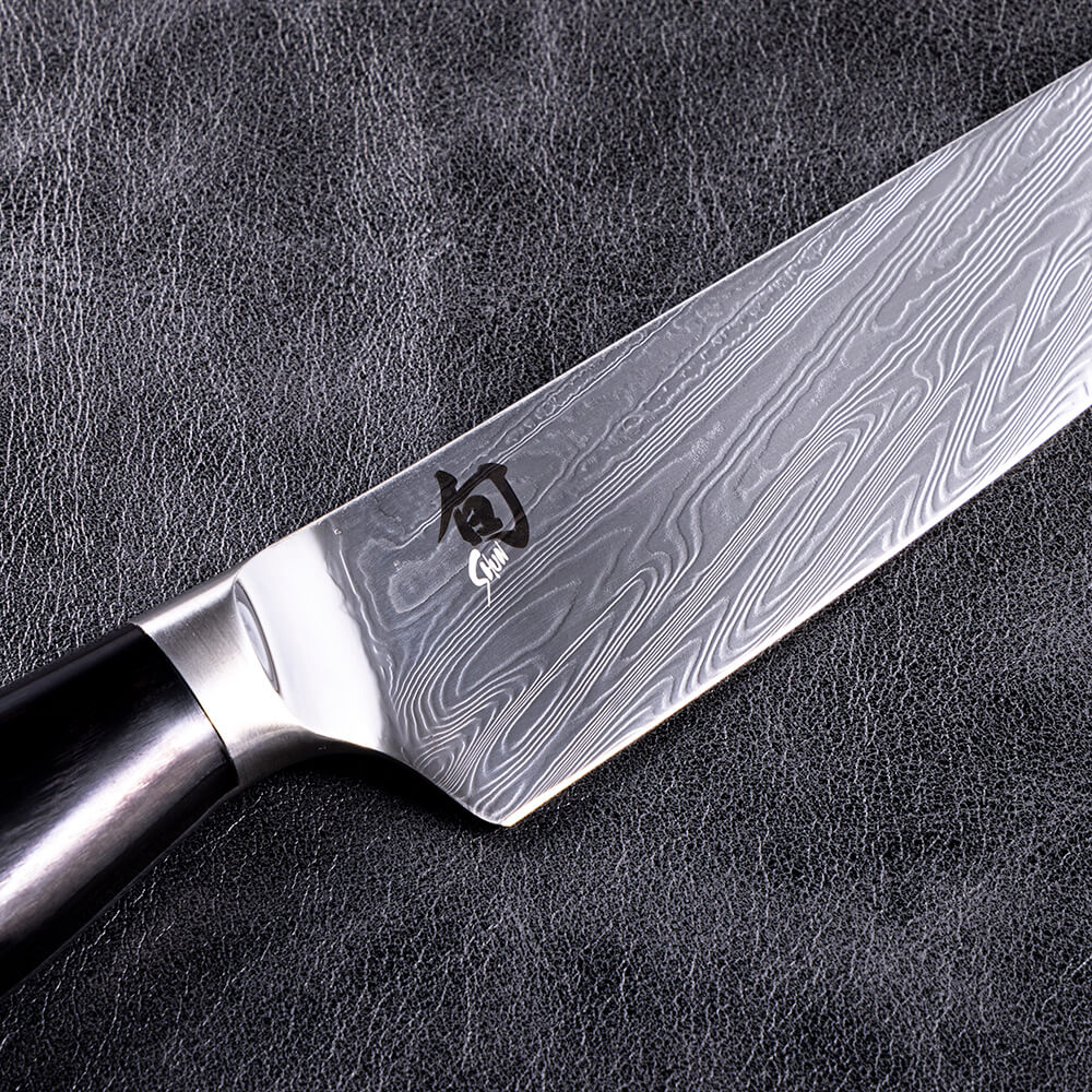 70層にも折り重ねられた2種類の高級鋼材から成る刃体は、美しい模様を作り出すだけでなく、