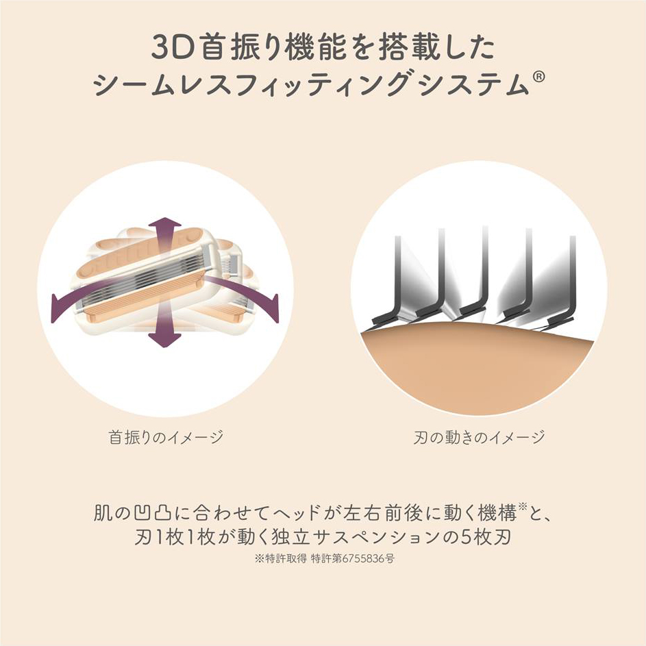 ・刃部は肌の凹凸に合わせてヘッドが左右前後に動く首振り機構※1と、刃1枚1枚が動く独立サスペンションの5枚刃(シームレスフィッティングシステム®)