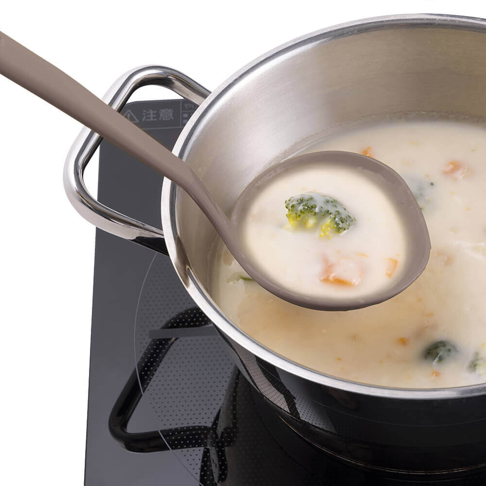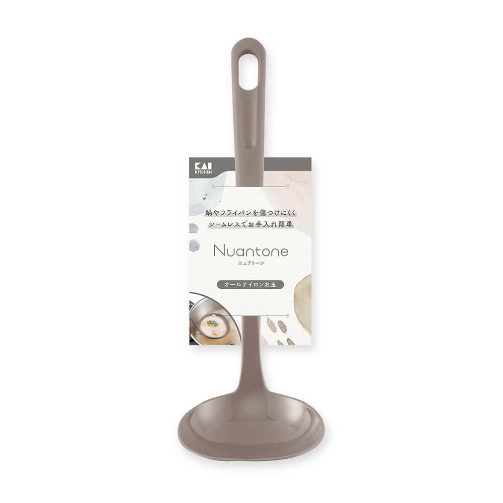 ・シームレスな形状でお手入れがしやすいお玉。ナイロン製で鍋を傷つけにくい。・ナイロン一体成型で、継ぎ目や凹凸、部品もなくシームレスな形状でお手入れがしやすく、鍋やフライパンを傷つけにくいです。