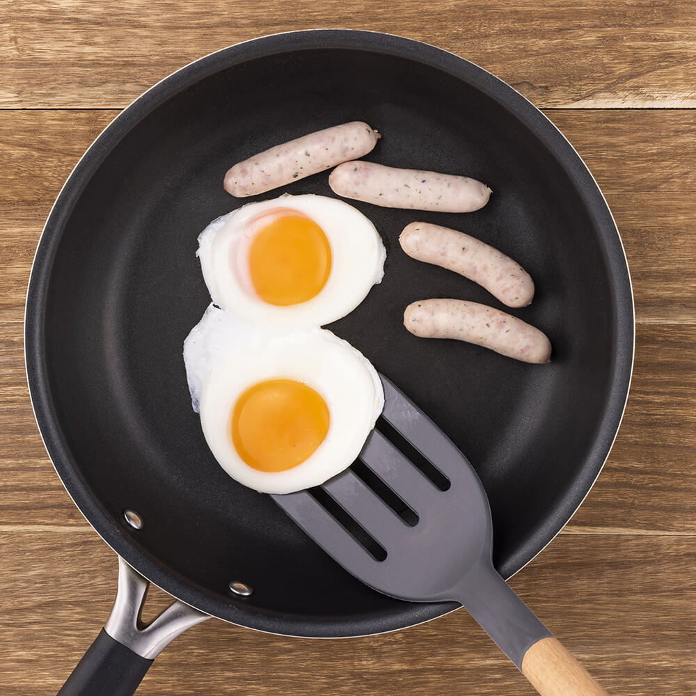 ・先端が薄く、食材の下に入り込みやすいターナー・ハンドルには環境に配慮したFSC認証の天然木を採用