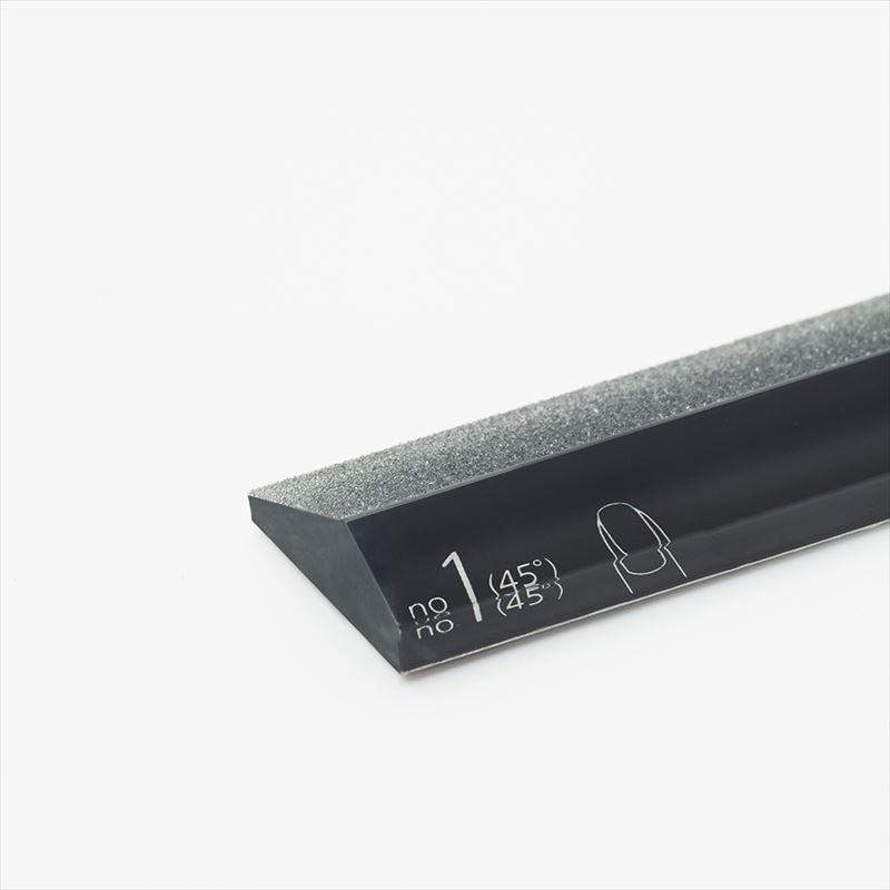 ネイリストのファイリング技術をヒントに開発した、独自設計のネイルファイル。ファイルに爪先、指の腹をあて、左右に動かしていくだけで、すべての爪を均一に整えることができます。削るときは左右に、仕上げは、同じ方向に3回動かすとさらに滑らかな仕上がりに。