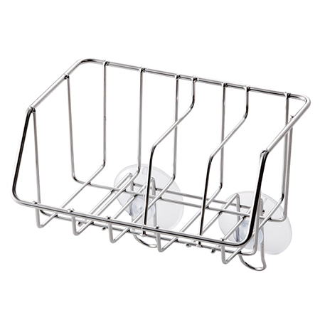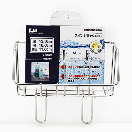 ミニサイズのボトル洗剤も置ける。下方に吸盤が取り付けられるので、水がかかりにくく、シンクが広く使える。