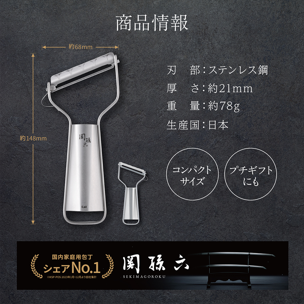 関孫六オールステンレス製のピーラー・食器洗浄機や食器乾燥機対応で清潔に使えるオールステンレス製。