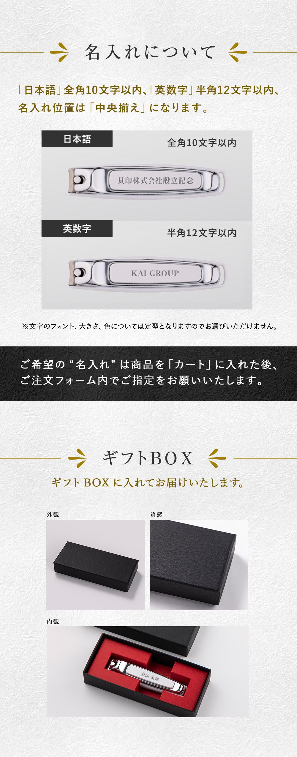 名前を入れた特別なツメキリを贈りませんか。・スパッと切れ味良く、硬い爪をカットします。