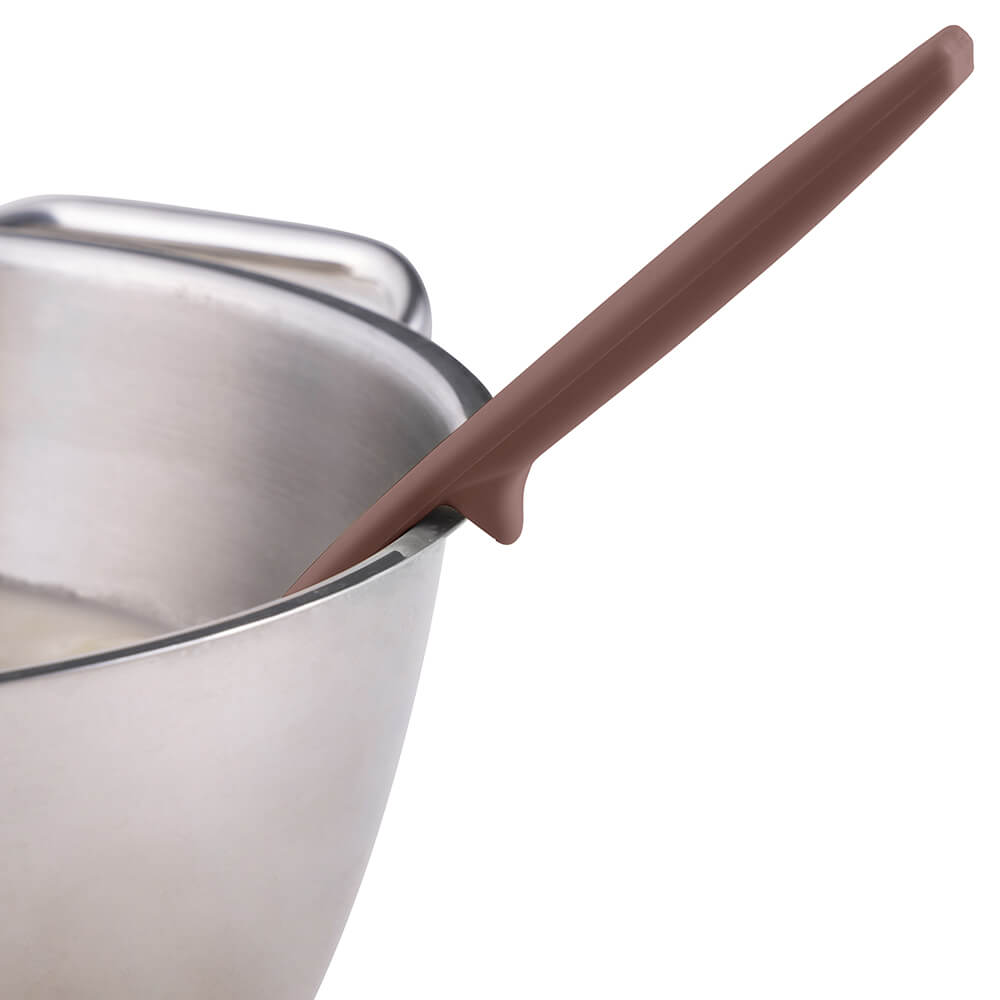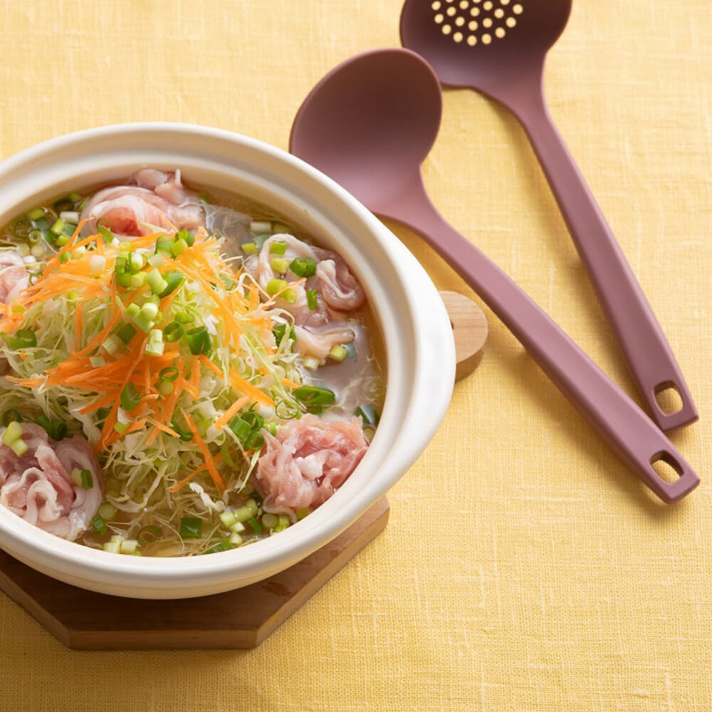 ・ナイロン一体成型で、継ぎ目や凹凸、部品もなくシームレスな形状でお手入れがしやすく、鍋やフライパンを傷つけにくい。