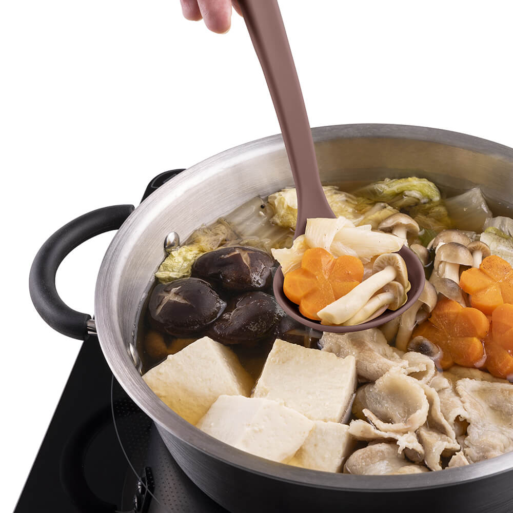 シームレスでお手入れ簡単・小さめサイズでかさばらない、取り分けに便利なミニお玉。