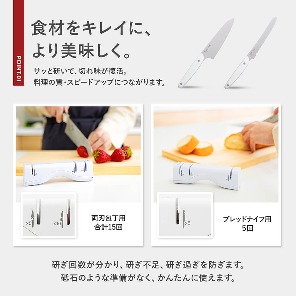 ・両刃包丁だけでなく、ブレッドナイフも研ぐことができます。(特許第7399601号)
