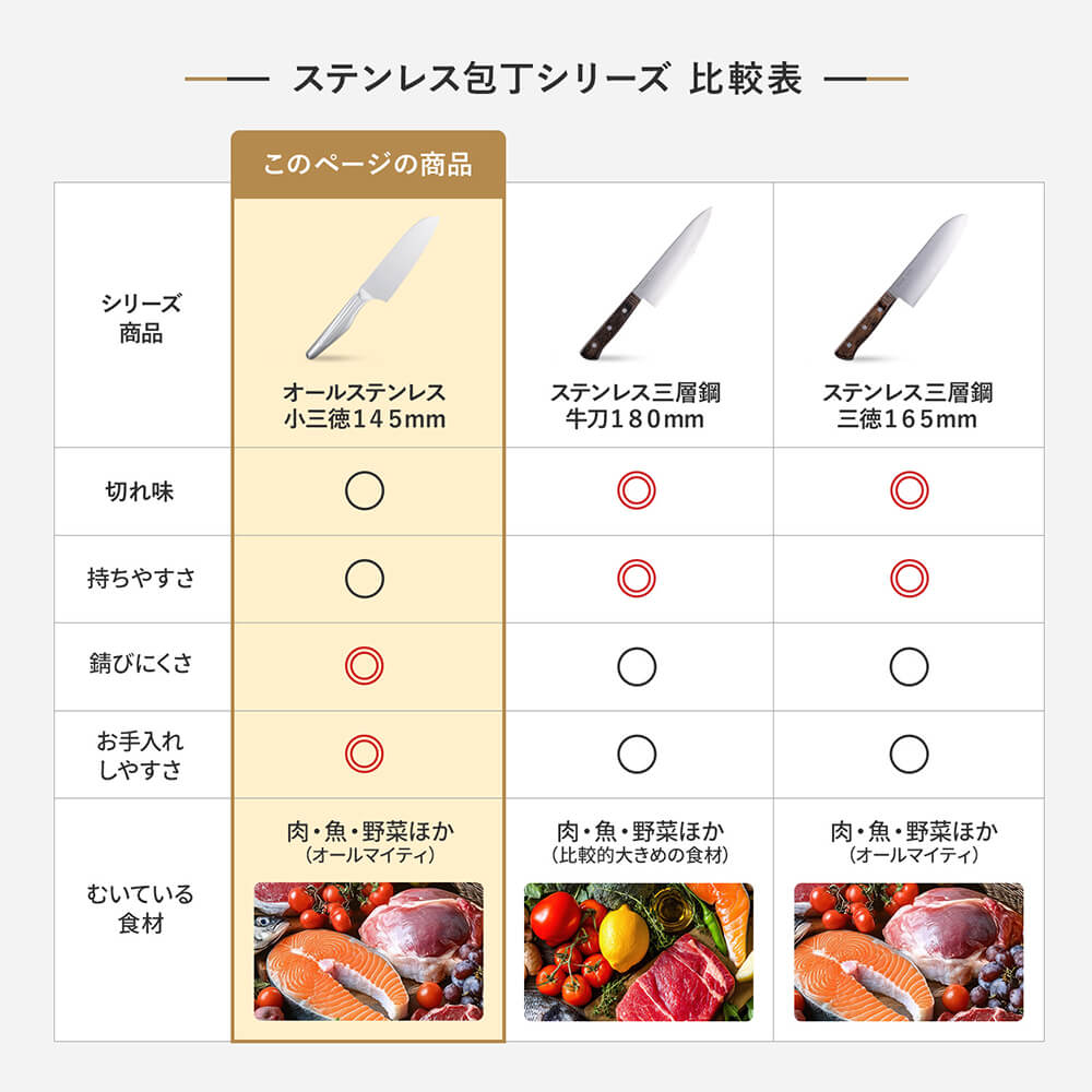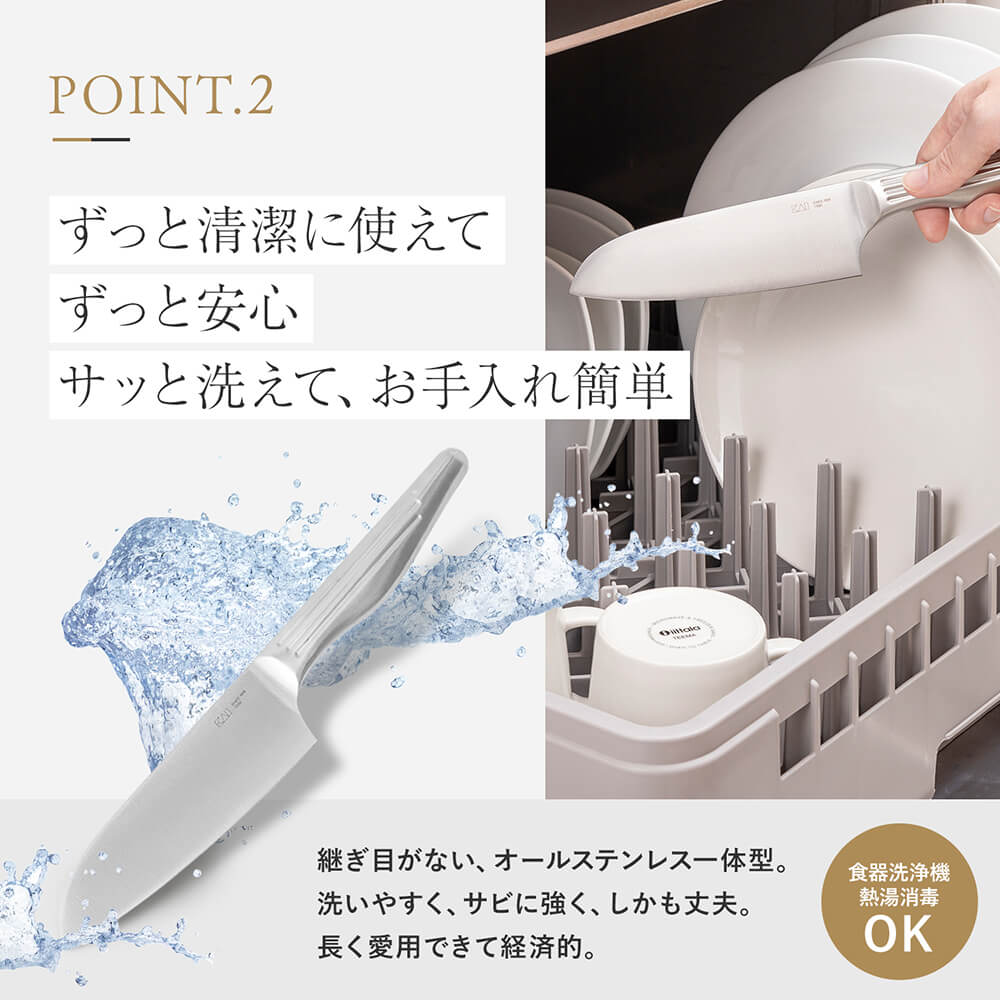 衛生的なオールステンレス包丁・食洗機可能なので、お手入れ簡単。