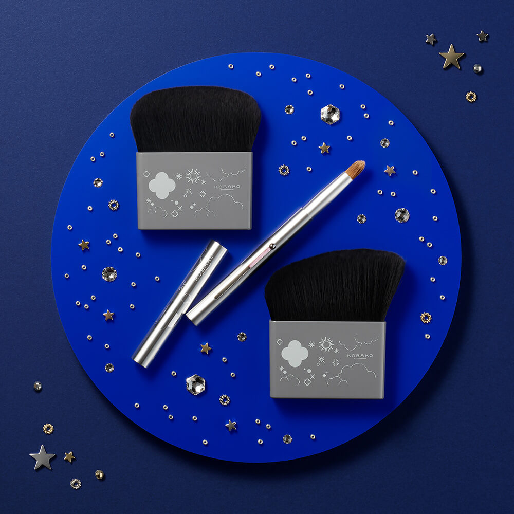 「セレスチャルメイクアップブラシセットD」には、本コフレ限定アイテムとして、アイメイクやリップなどにマルチで使える「アクセントブラシ(スライド)」と、ベースメイクの仕上がりをアップデートする、肌になめらかにフィットする「ファンデーションブラシD」の限定デザインをセット。