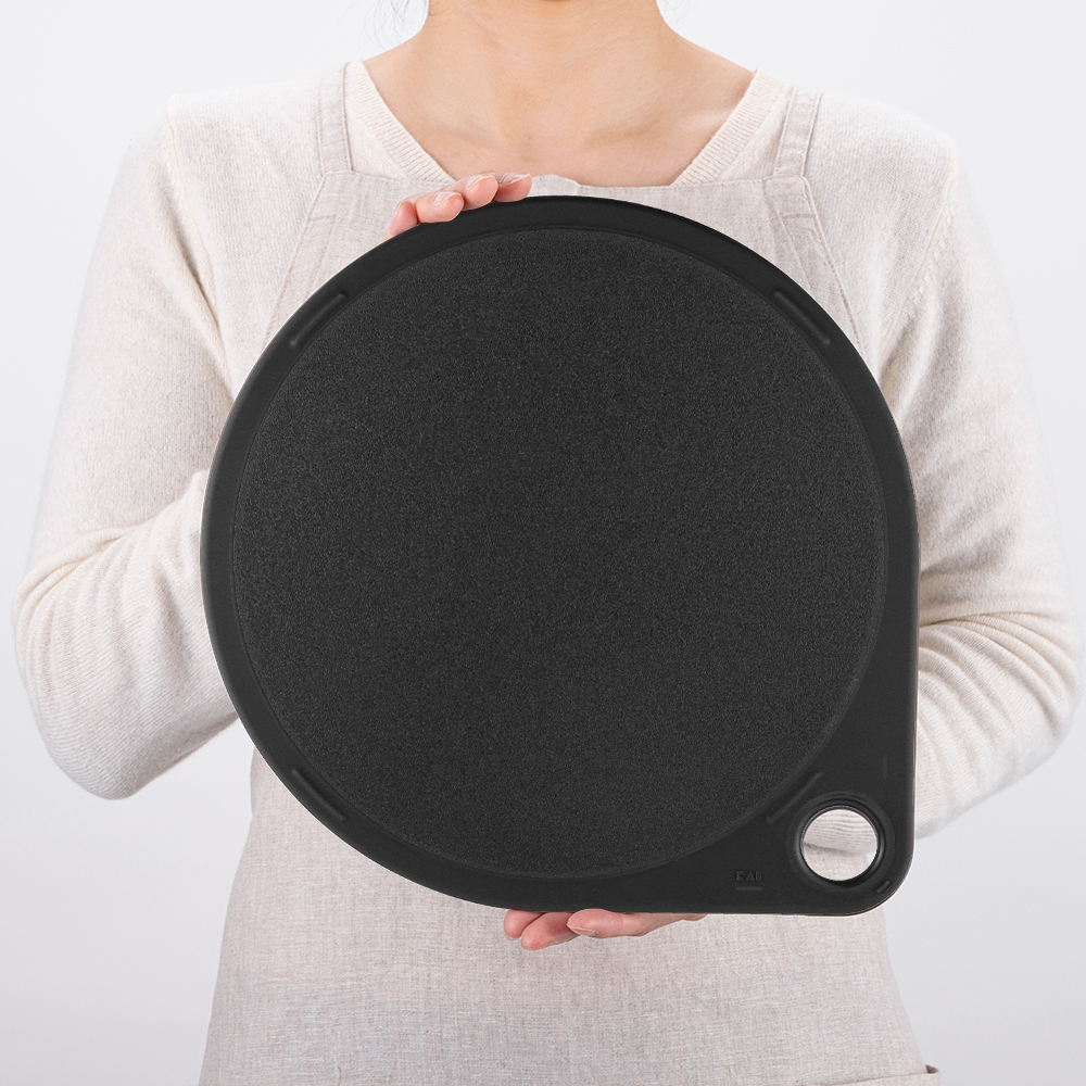 奥行きたっぷり、ひろい作業スペースが魅力のまるいまな板です。