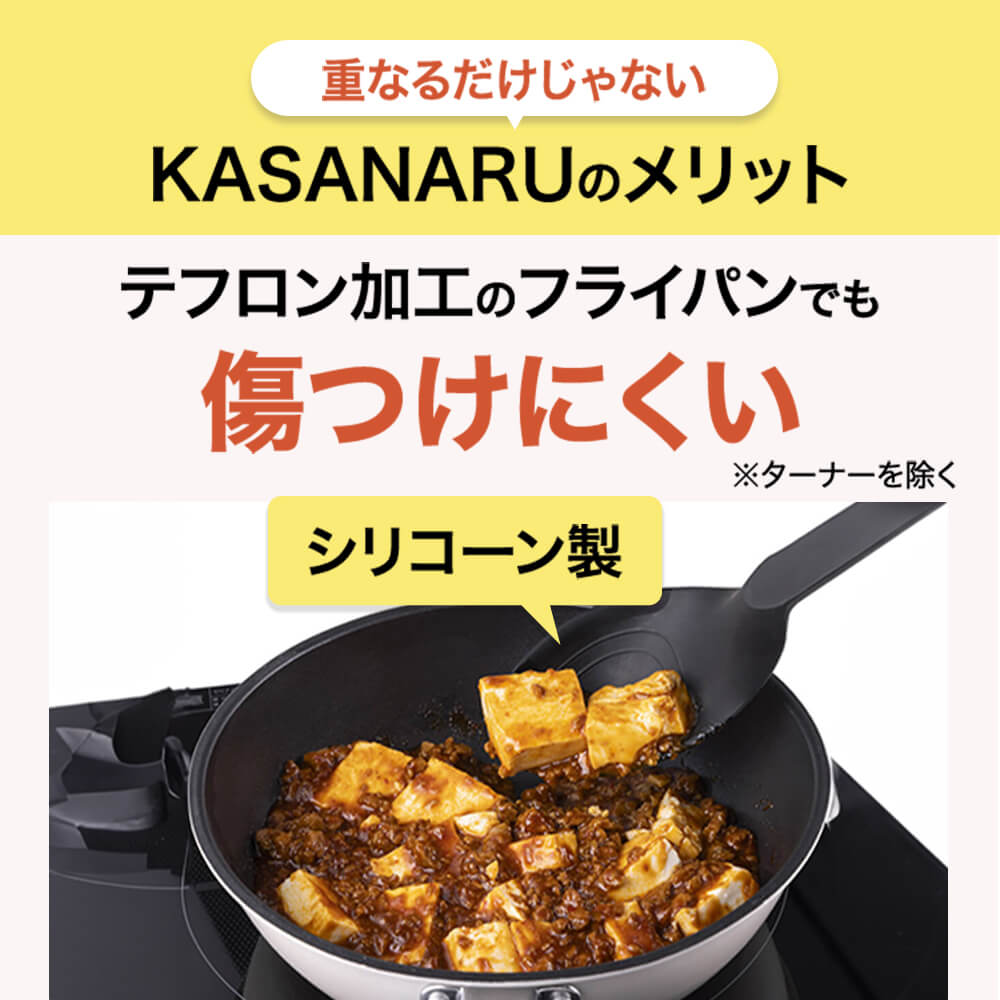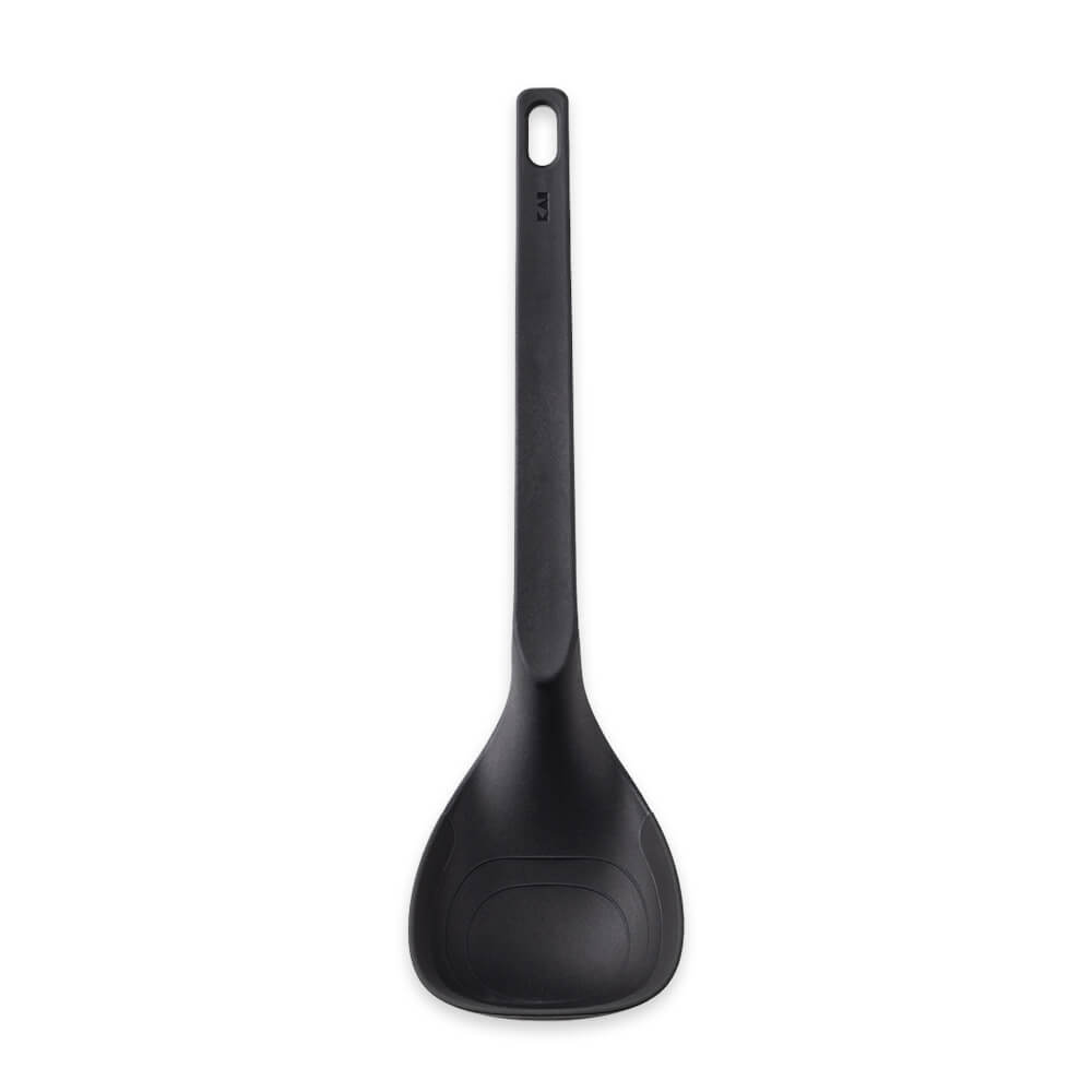 ・先端はシリコーン製で、フライパンや鍋にフィットする形状。こそぎ取りやすく、すくいやすい。