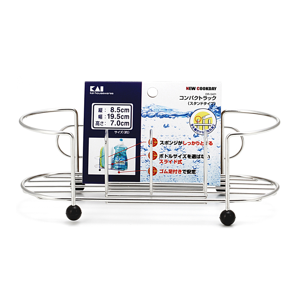 ボトルサイズを選ばないスライド式。スポンジがしっかりとまる。ゴム足付で安定。シンクをキズつけません。