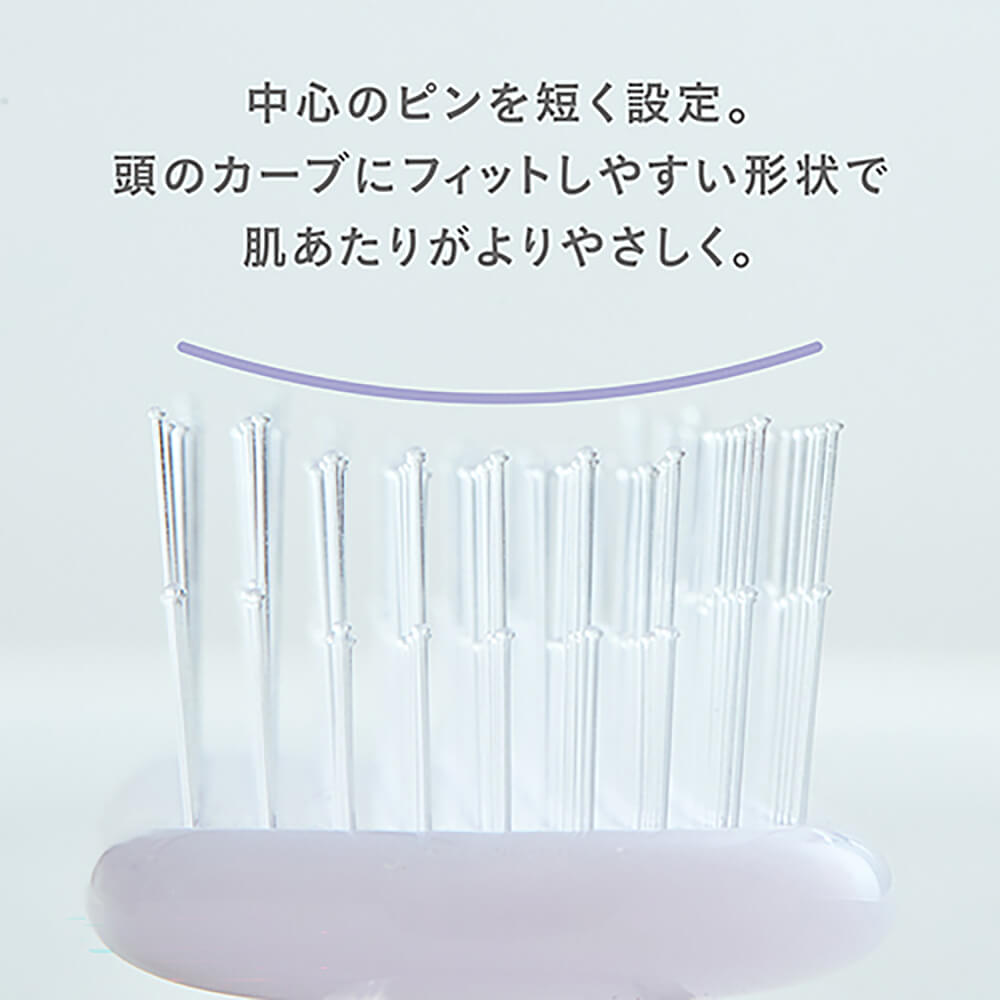 真ん中5列のピンの長さを短めにし、頭のカーブにフィットする形状にすることで、やさしい肌あたりに。