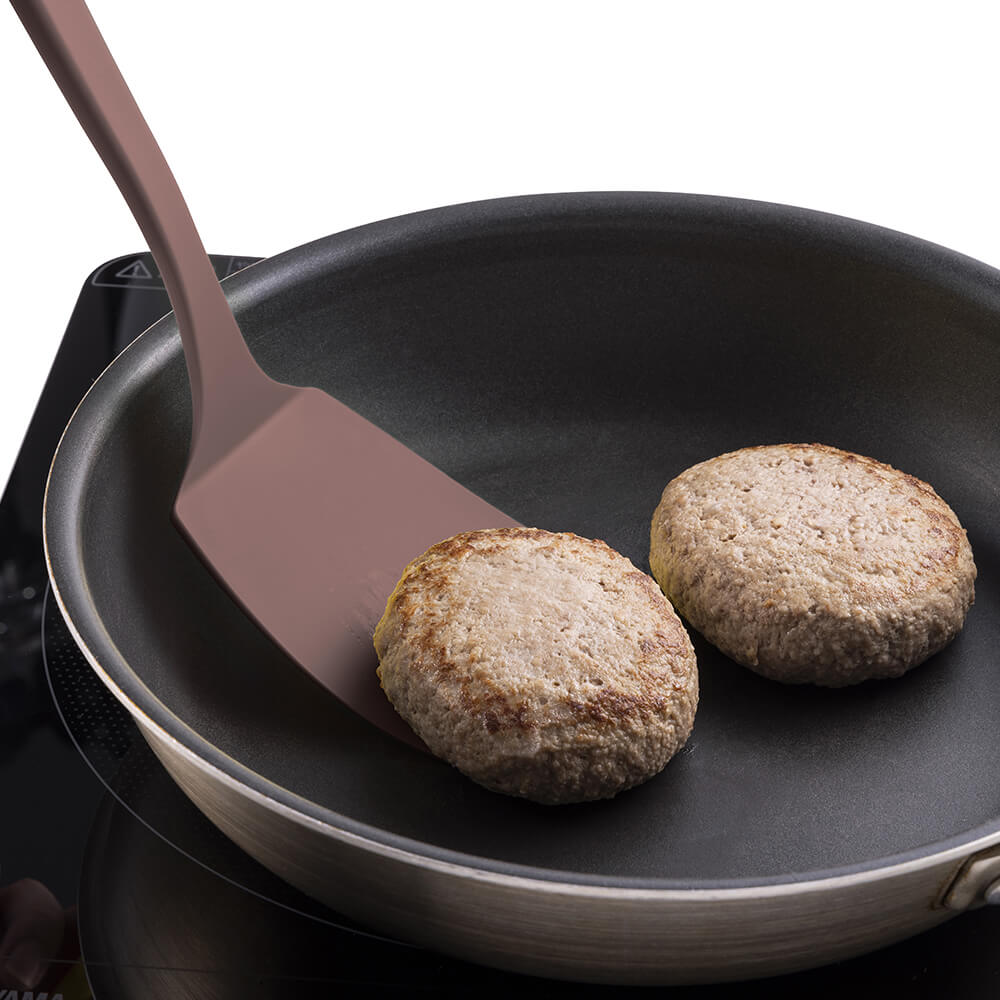 ・ナイロン一体成型で、継ぎ目や凹凸、部品もなくシームレスな形状でお手入れがしやすく、鍋やフライパンを傷つけにくいです。