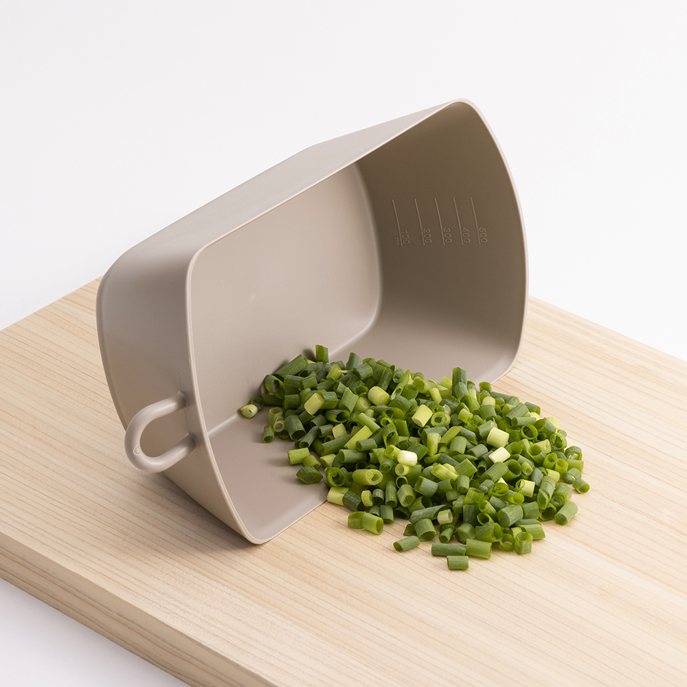 ・バットのフチのエッジで、切った食材をすくい取れる。