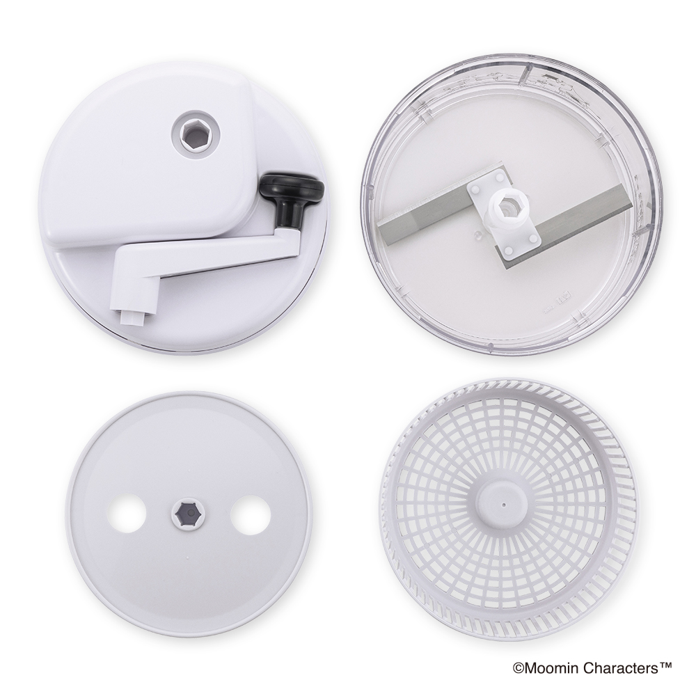 ・ハンドルを回せば、切れ味の良いステンレス製の刃が高速回転!みじん切りがあっというまに、出来上がります。