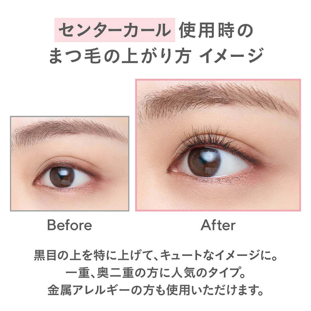 山型のシェイプで、目の中央、黒目の上のまつ毛を特にくるっと上げるセンターカールタイプ。