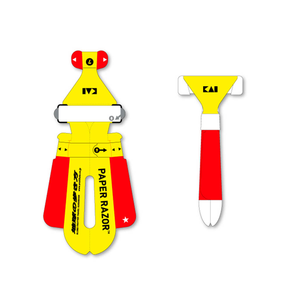 ハンドルに紙、刃体(ヘッド部含む)に金属を使用し、“脱プラスチック”※を実現した、折り紙のように一枚の紙を組み立てて使う紙カミソリ。