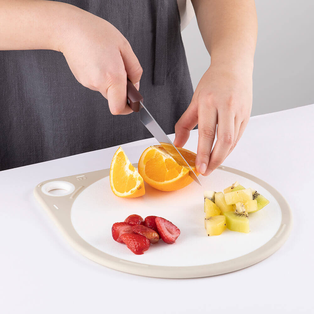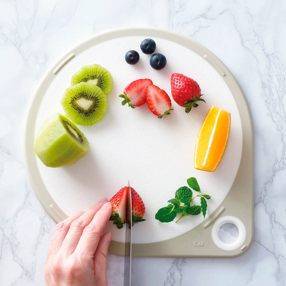 ※右利き・左利き兼用の包丁になります。左利きの方でもご使用いただけます。【まるいまな板 ホワイト〈S/25cm〉】