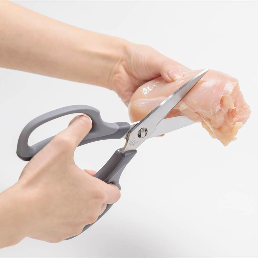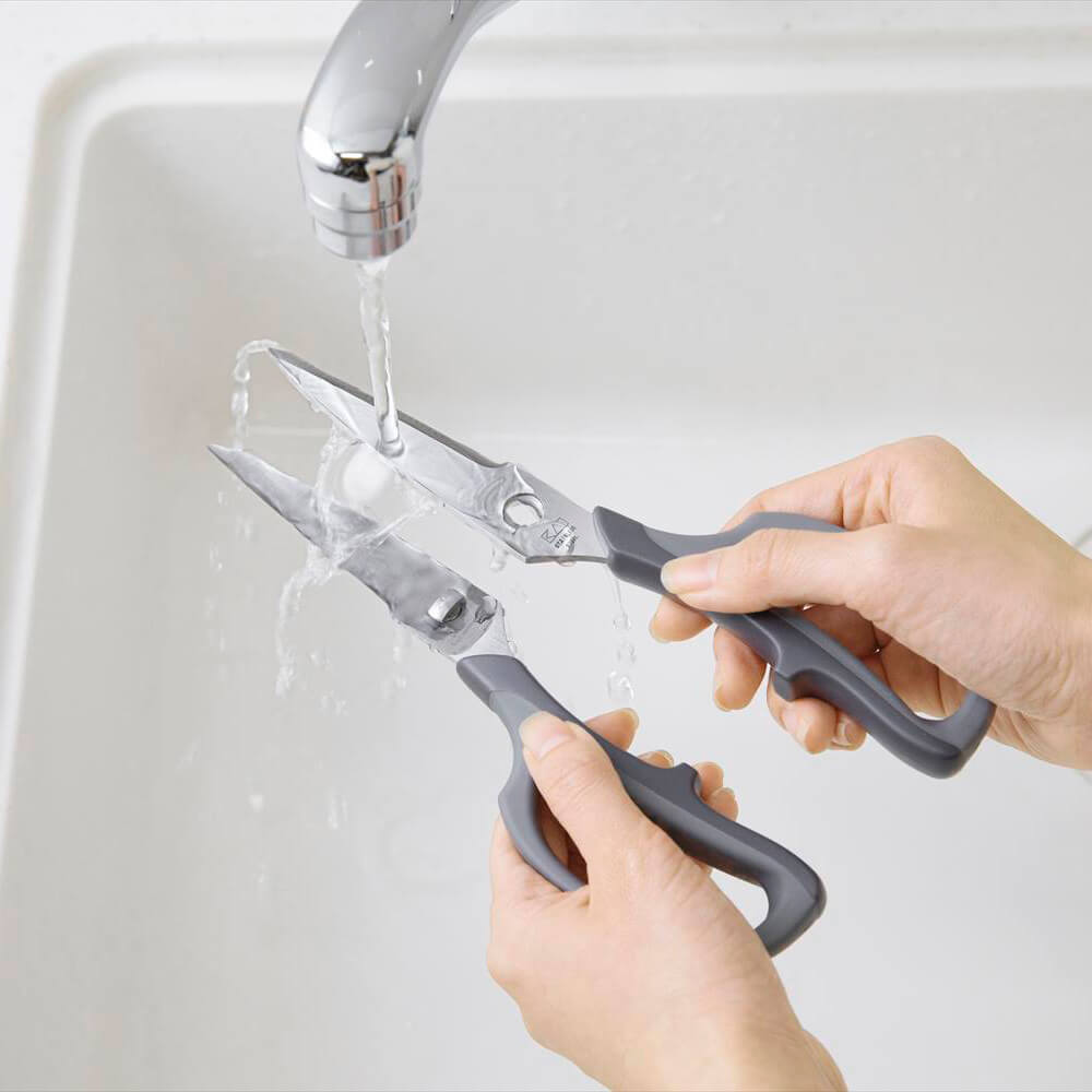 ・衛生的なオールステンレス製で、食洗機対応です。【ソフトグリップキッチンバサミ】