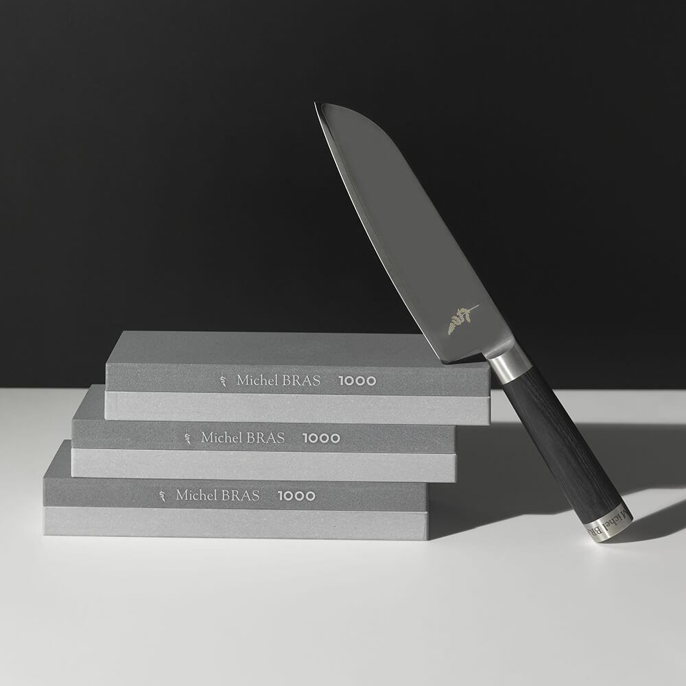 一般的な焼成砥石より硬く、比較的減りにくい砥石で研削力も高いため、硬度の高いMichel BRASの包丁にもおすすめです。