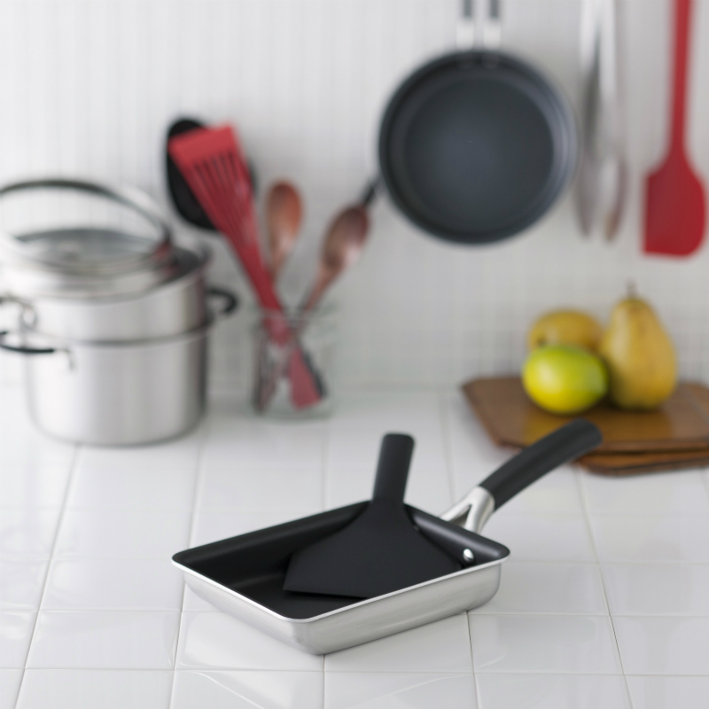 IHに適したステンレスとアルミを合わせ、熱伝導性と保温性の両方に優れた卵焼き器を実現しました。底面を均一に加熱できるだけでなく、側面まで速く熱がまわります。耐熱性のハンドルなので、卵焼き器をそのままオーブンに入れて加熱できます。持ちやすく短いハンドルのおかげで、卵焼き器の重さをあまり感じさせず、調理がしやすくなりました。耐久性の高いフッ素樹脂加工「イクリプス」を使用しています。スクレッパーは、卵焼き器にぴったりと合ったサイズで、卵を返すのも簡単です。