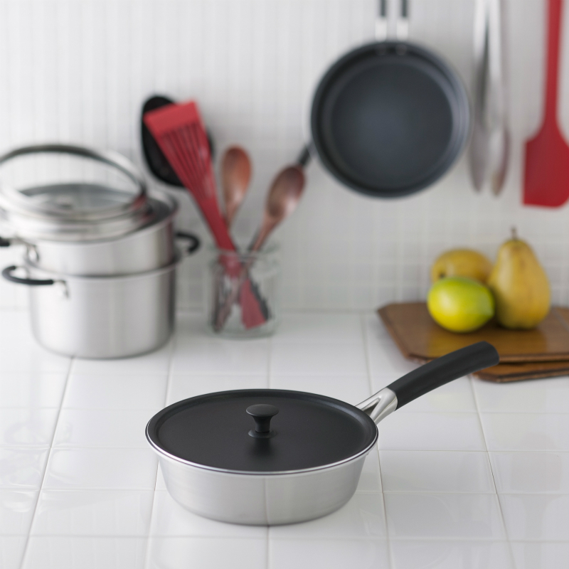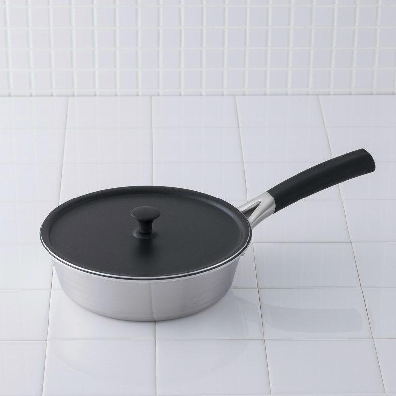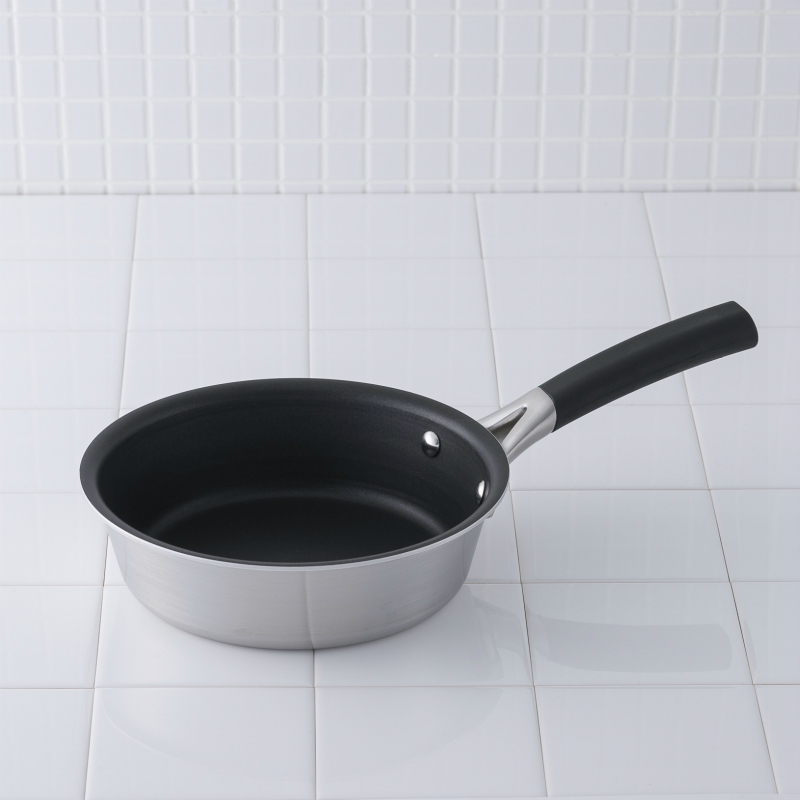 IHに適した材質ステンレスとアルミを合わせ、熱伝導性と保温性の両方に優れたフライパンを実現しました。