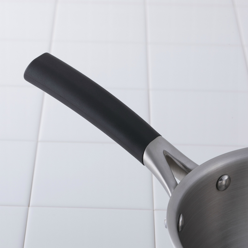 IHに適したステンレスとアルミを合わせ、熱伝導性と保温性の両方に優れた構造を実現しました。底面を均一に加熱できるだけでなく、側面まで速く熱がまわります。耐熱性のハンドルなので、片手鍋をそのままオーブンに入れて加熱できます。深さがあるので、煮物、揚げ物、蒸し物から炊飯まで、幅広いレシピに対応してくれます。蓋の中央部はガラス製なので、調理中に中の状態を見ることが出来ます。
