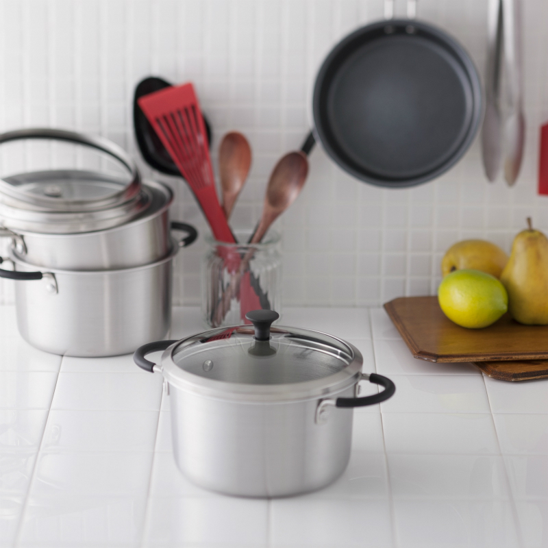 本体:ステンレス鋼(クロム18%・ニッケル8%)、アルミニウム合金、ステンレス鋼(クロム18%)
