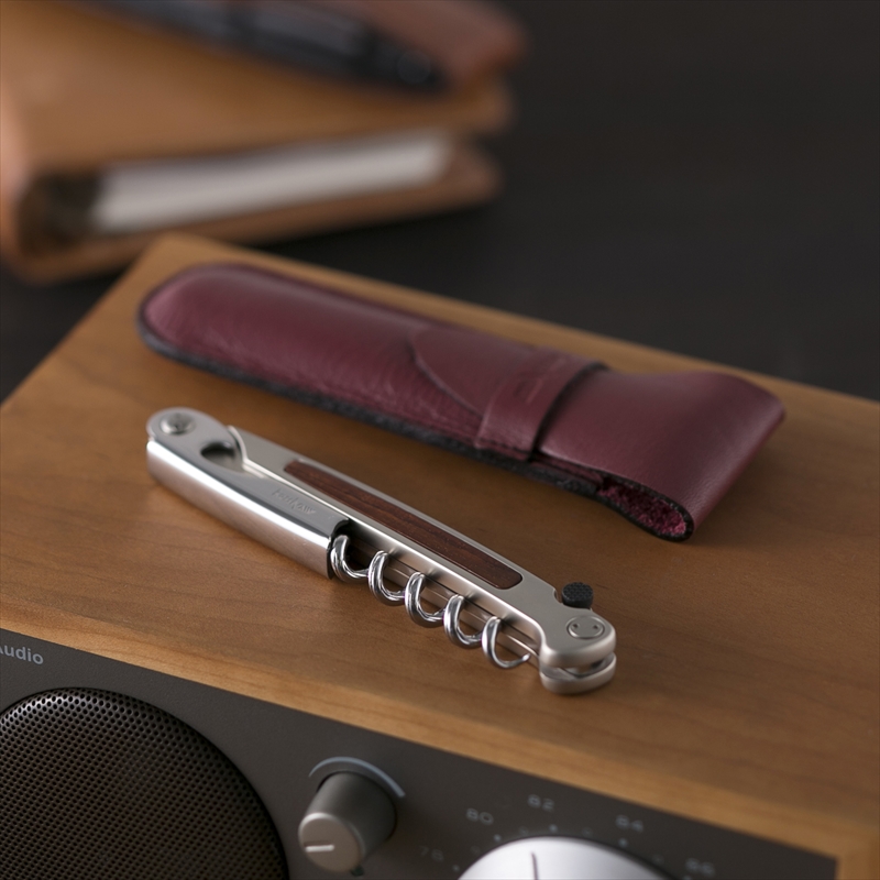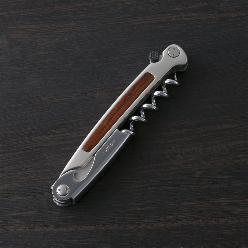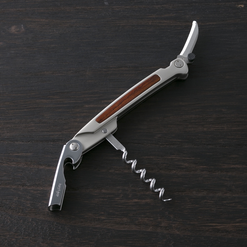 ソムリエナイフタイプのコルクスクリュー。シールのカットからコルクを抜くまでの一連の動作を、スムーズ&スマートに行うことができます。