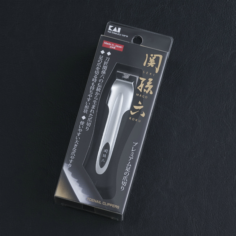 刀匠関孫六の伝統から生まれたツメキリ。足の硬い爪も切りやすいストレート刃。足の爪を切るときも持ちやすい大きな形状、大きなヤスリ付きです。