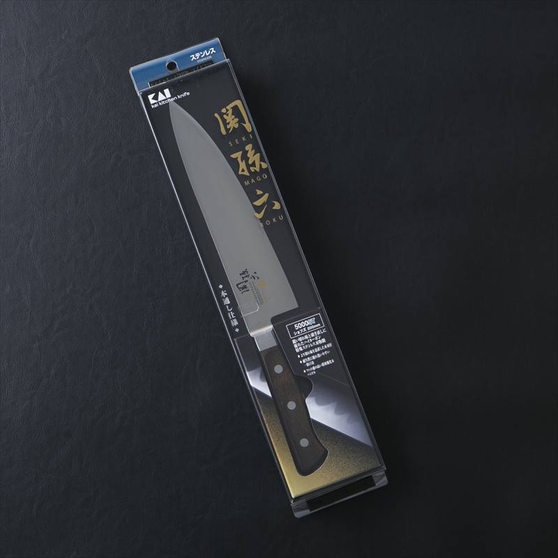 ====================鎌倉時代に九州から関(美濃)に移り住んだ刀鍛冶が、良質の土、水、炭に恵まれたこの地で、刀剣作りをはじめたのが関鍛冶の起源です。多くの名刀が生まれましたが、名匠「関の孫六」は独特の作刀を工夫し、美しく芸術性の高い、切れ味の抜群な最上の業物を世に送り出しました。江戸から明治と時代は変遷し、関の刀匠たちの多くが家庭用刃物の製造へと転業しました。関の刀剣が「折れず曲がらず、よく切れる」と称賛された信念は、現代の刃物作りにもしっかりと受け継がれています。本製品「関孫六」の銘は27代目兼元、刀匠金子孫六氏によるもので、匠の技を生かしながら、その切れ味を現代に伝えています。