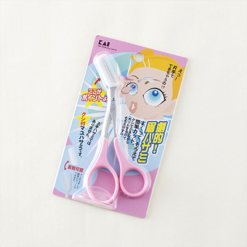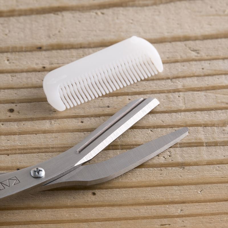 そろえて、簡単カット!右手専用のクシ付マユハサミ。クシの部分は着脱可能です。