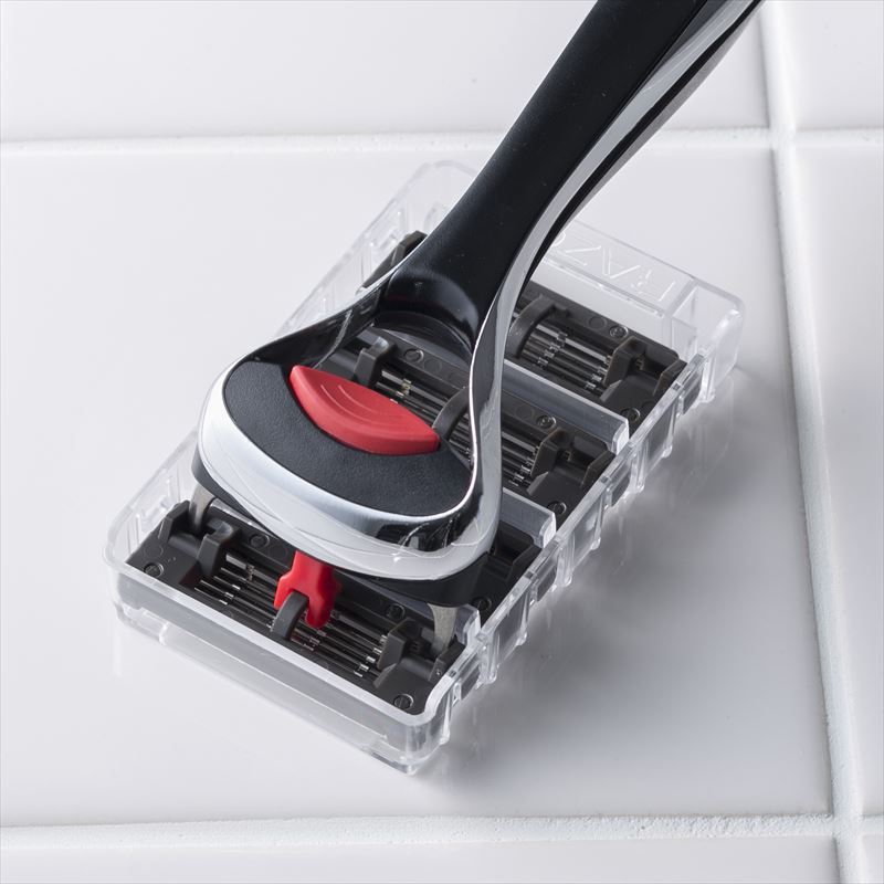 肌にやさしい5枚刃カミソリ刃体にエラストマーバンパーを採用し、ヒゲを立たせながらシェービング。KAI RAZORシリーズの全てのホルダーでご使用いただけます。KAIRAZOR KAI5ホルダー、KAI4ホルダー、ヴァリオスホルダー