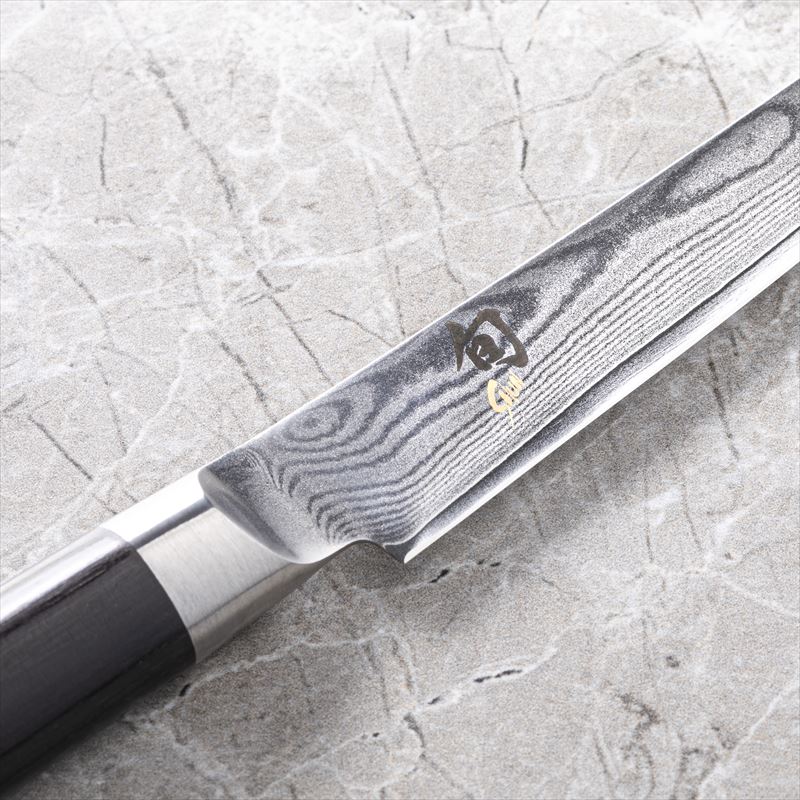 季節の移ろいをあじわい、より多彩に楽しむための包丁ブランド、「旬」。硬さの異なるステンレスを重ね合わせた33層構造により、刃体の表面に木目のように美しいダマスカス模様が広がります。貝印が長年の刃物作りで培ってきた刃付けの技術と、高硬度・高炭素のVG-MAX材を芯材に採用することで、鋭い切れ味が永く続きます。鋲を使わず美しく仕上げた積層強化木のD型ハンドルは手に程よくフィットします。 機能美を追求した道具「旬」は、台所のみならず卓上で、魅せる道具として、新しい生活に彩りを加えます。