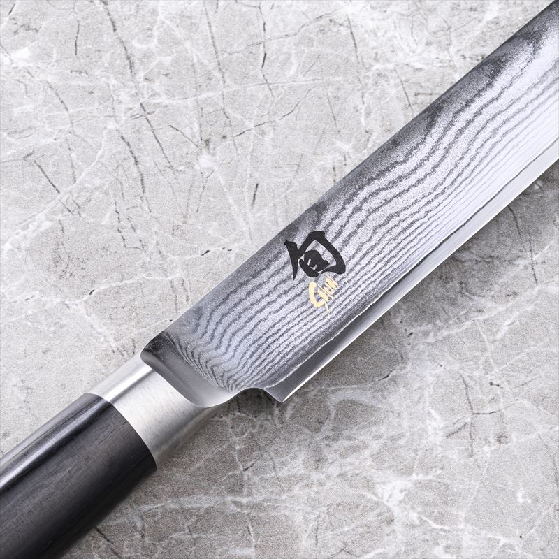 季節の移ろいをあじわい、より多彩に楽しむための包丁ブランド、「旬」。硬さの異なるステンレスを重ね合わせた33層構造により、刃体の表面に木目のように美しいダマスカス模様が広がります。貝印が長年の刃物作りで培ってきた刃付けの技術と、高硬度・高炭素のVG-MAX材を芯材に採用することで、鋭い切れ味が永く続きます。鋲を使わず美しく仕上げた積層強化木のD型ハンドルは手に程よくフィットします。 機能美を追求した道具「旬」は、台所のみならず卓上で、魅せる道具として、新しい生活に彩りを加えます。
