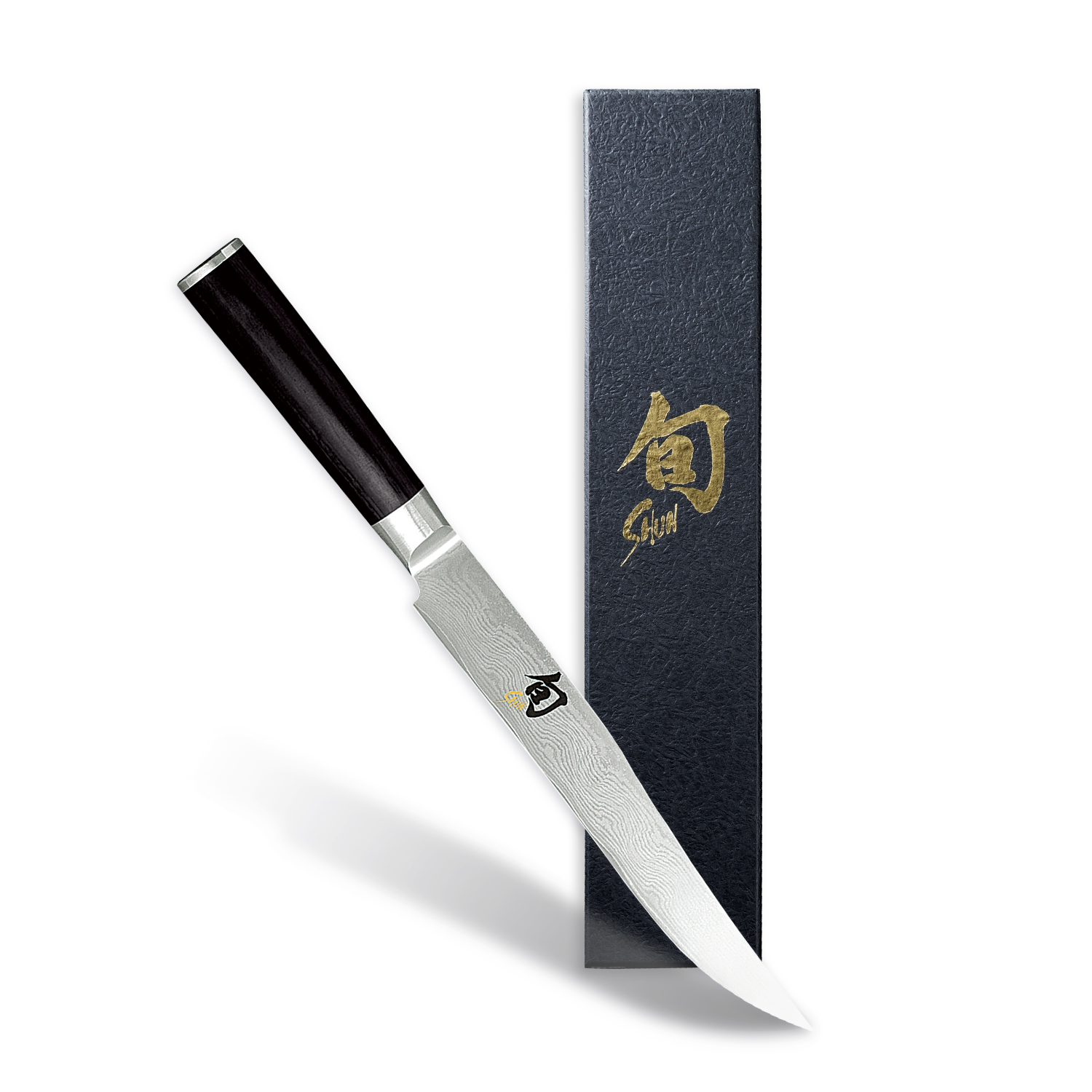 季節の移ろいをあじわい、より多彩に楽しむための包丁ブランド、「旬」。硬さの異なるステンレスを重ね合わせた33層構造により、刃体の表面に木目のように美しいダマスカス模様が広がります。貝印が長年の刃物作りで培ってきた刃付けの技術と、高硬度・高炭素のVG-MAX材を芯材に採用することで、鋭い切れ味が永く続きます。鋲を使わず美しく仕上げた積層強化木のD型ハンドルは手に程よくフィットします。 機能美を追求した道具「旬」は、台所のみならず卓上で、魅せる道具として、新しい生活に彩りを加えます。