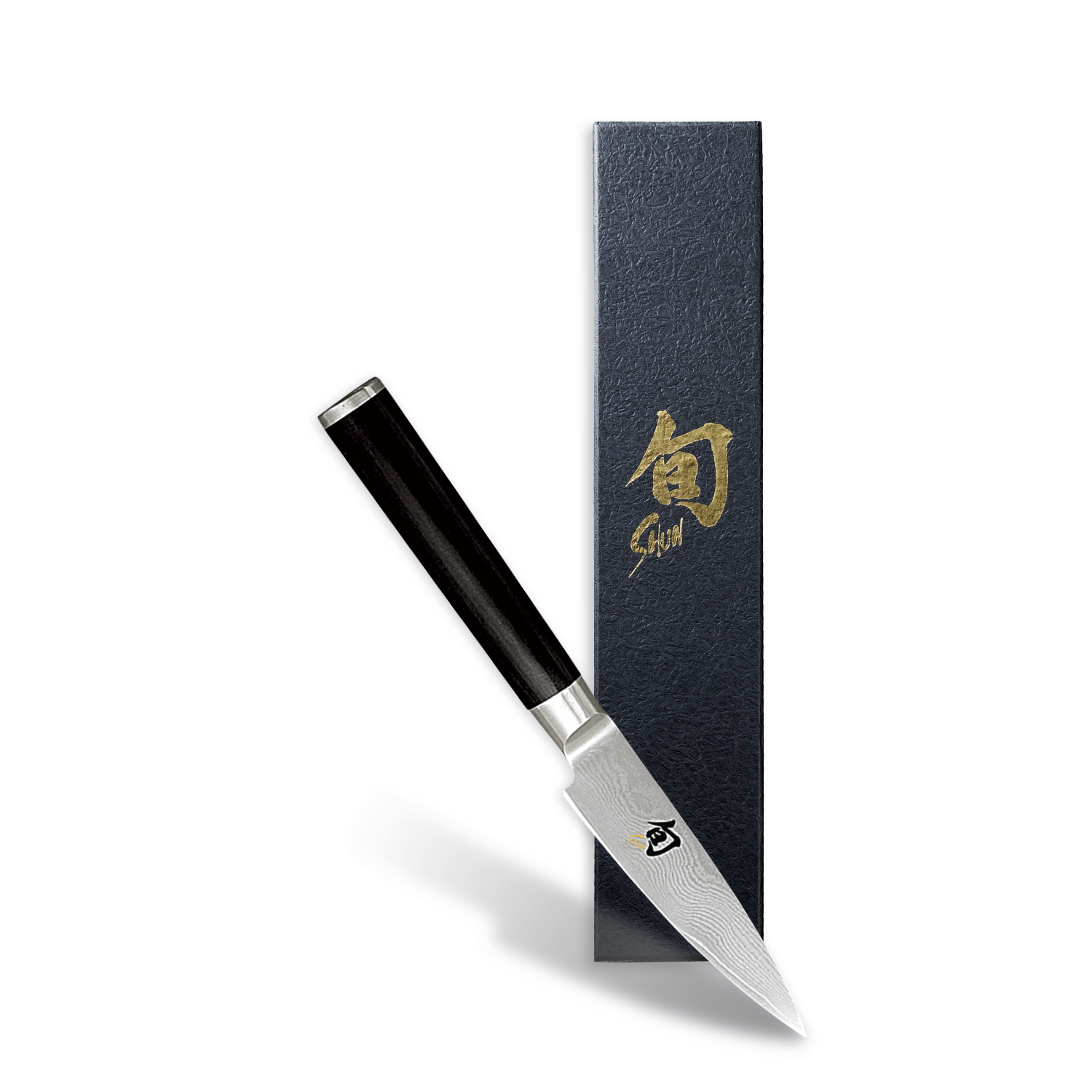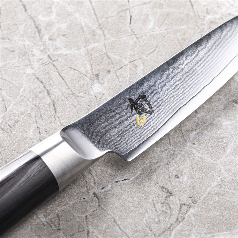 季節の移ろいをあじわい、より多彩に楽しむための包丁ブランド、「旬」。硬さの異なるステンレスを重ね合わせた33層構造により、刃体の表面に木目のように美しいダマスカス模様が広がります。貝印が長年の刃物作りで培ってきた刃付けの技術と、高硬度・高炭素のVG-MAX材を芯材に採用することで、鋭い切れ味が永く続きます。鋲を使わず美しく仕上げた積層強化木のD型ハンドルは手に程よくフィットします。 機能美を追求した道具「旬」は、台所のみならず卓上で、魅せる道具として、新しい生活に彩りを加えます。