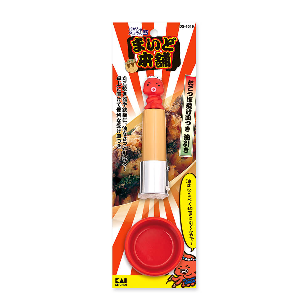 卓上使いに便利なたこ壺型受け皿付の油引きです。