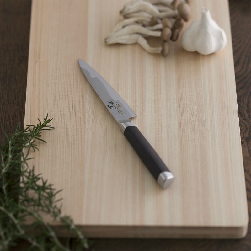 - 背側と刃側のコントラストで表現された優雅な波紋の美しさは、特殊精密接合(ろう付け)の技術の証。耐食性、耐摩耗性、高靱性、耐久性と多面的な強さを備えており、プロユース用としても優れています。ハンドルは手にフィットする逆三角形のシェープ。鋼材の特長を最大限引き出し、切れ味、使い心地、デザイン性という機能美を追求しました。※右利き・左利き兼用の包丁になります。左利きの方でもご使用いただけます。