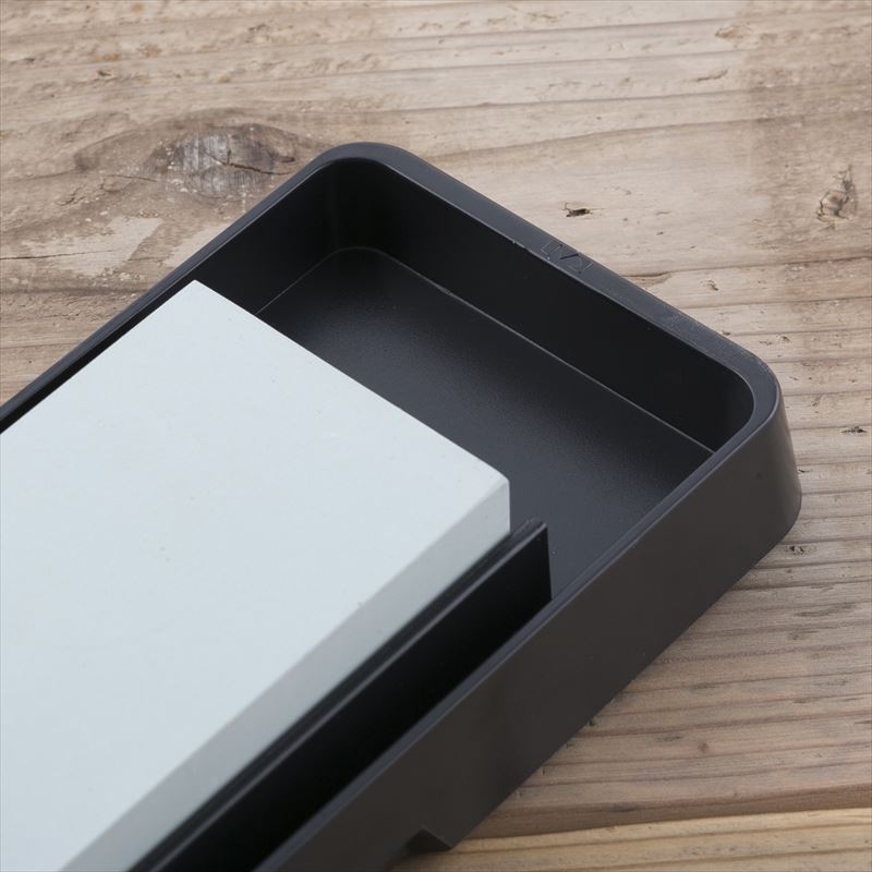 包丁メーカーが考えた、研ぎやすい、本格的な砥石です。包丁を本格的に研ぐには「荒砥石」→「中仕上砥石」→「仕上砥石」の順に、荒い目の砥石から初めて、次第に目の細かい砥石で仕上げていきます。この砥石は最後の仕上げに使用するための、目のとても細かい砥石です。受け皿の裏面には、合成ゴムのリブが付いていて、すべりにくく安定して作業ができます。砥石上の水(とぎ汁)を受ける溝がついていて、キッチンを汚しません。ご使用後、砥石はホルダーにセットしたままで、水切り、乾燥できます。