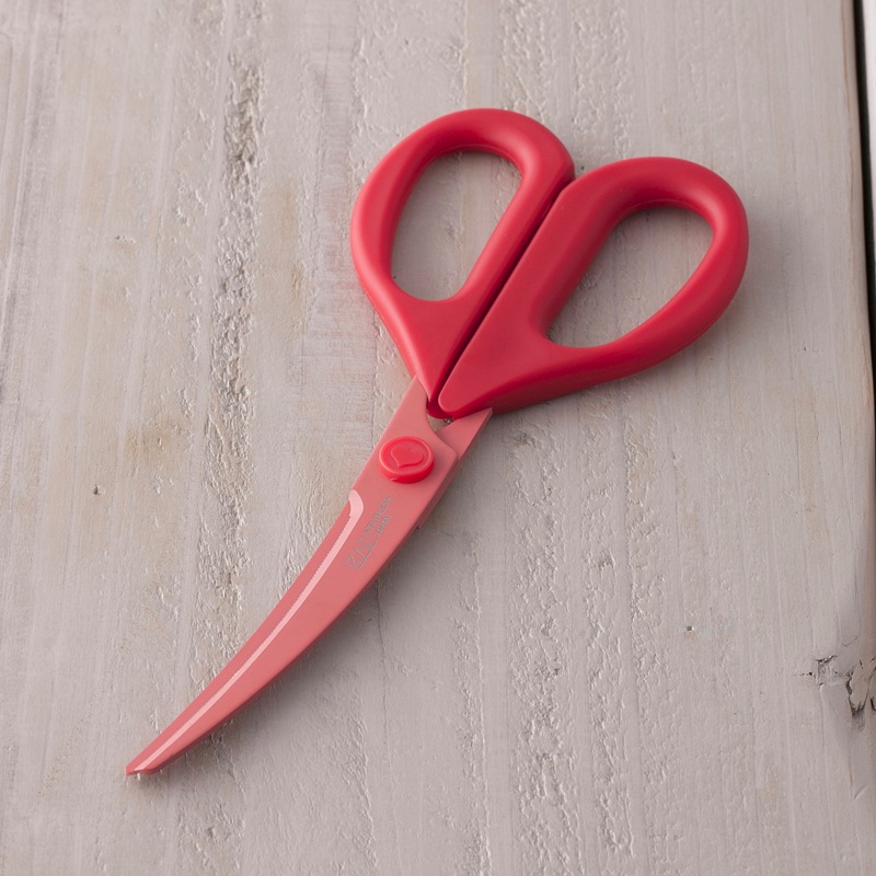 - カーブキッチンバサミ:長さ23mm×幅1mm×高さ1mm 重量:16g ハンディスニップバサミ:長さ166mm×幅7mm×高さ1mm 重量:45g