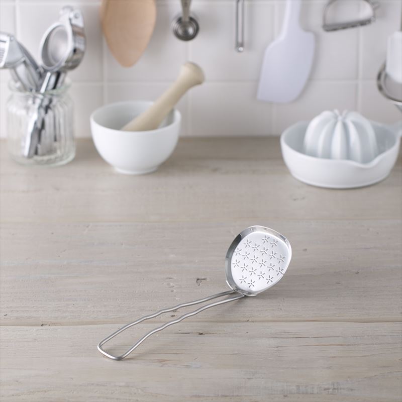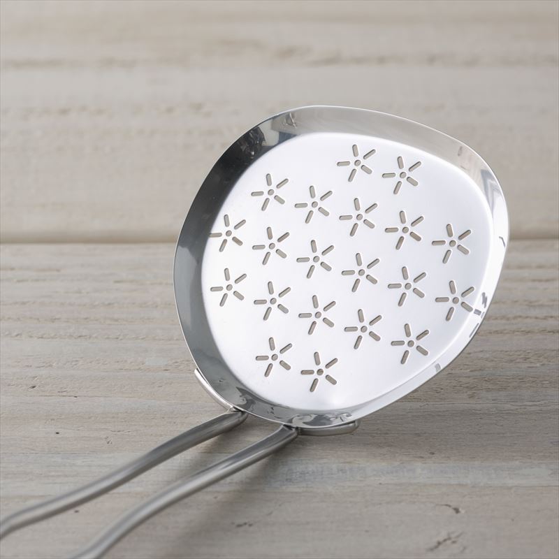 アクとりと言えば網タイプのものが定番ですが、こちらは網タイプよりも洗い易くて丈夫なステンレス板製。かすあげ機能とあくとり機能を兼ね備えた商品です。鍋に沿う形状なので、すくったアクを洗ったあとに鍋の中の具材もすくえます。