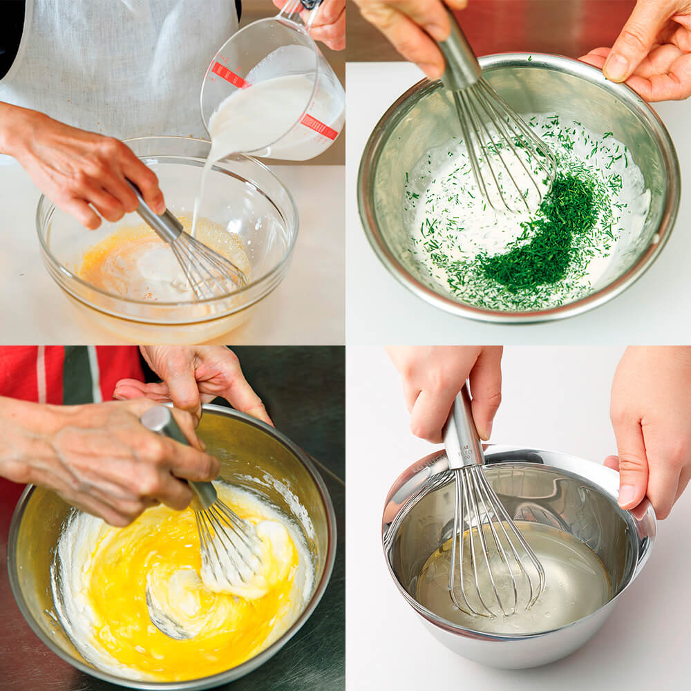 線材が重ならず底あたりが良いので効率良く混ぜることが出来ます。押しつぶしながらの混ぜも可能です。